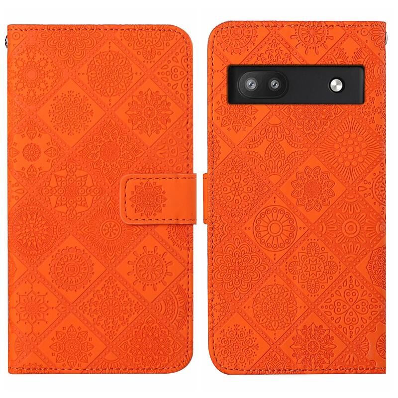 Για το Google Pixel 6a Ethnic Style ανάγλυφο μοτίβο δερμάτινη θήκη τηλεφώνου (πορτοκαλί)