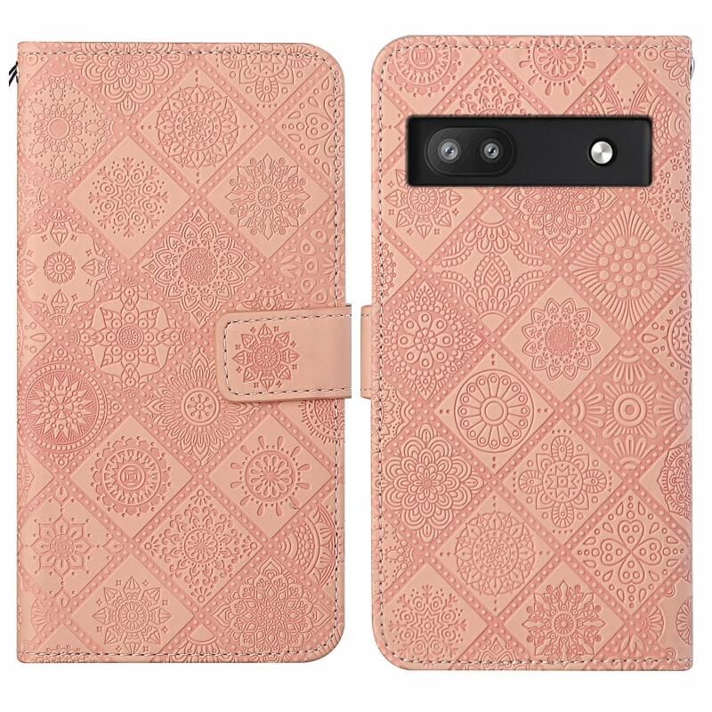Για το Google Pixel 6a Ethnic Style ανάγλυφο μοτίβο δερμάτινη θήκη τηλεφώνου (ροζ)