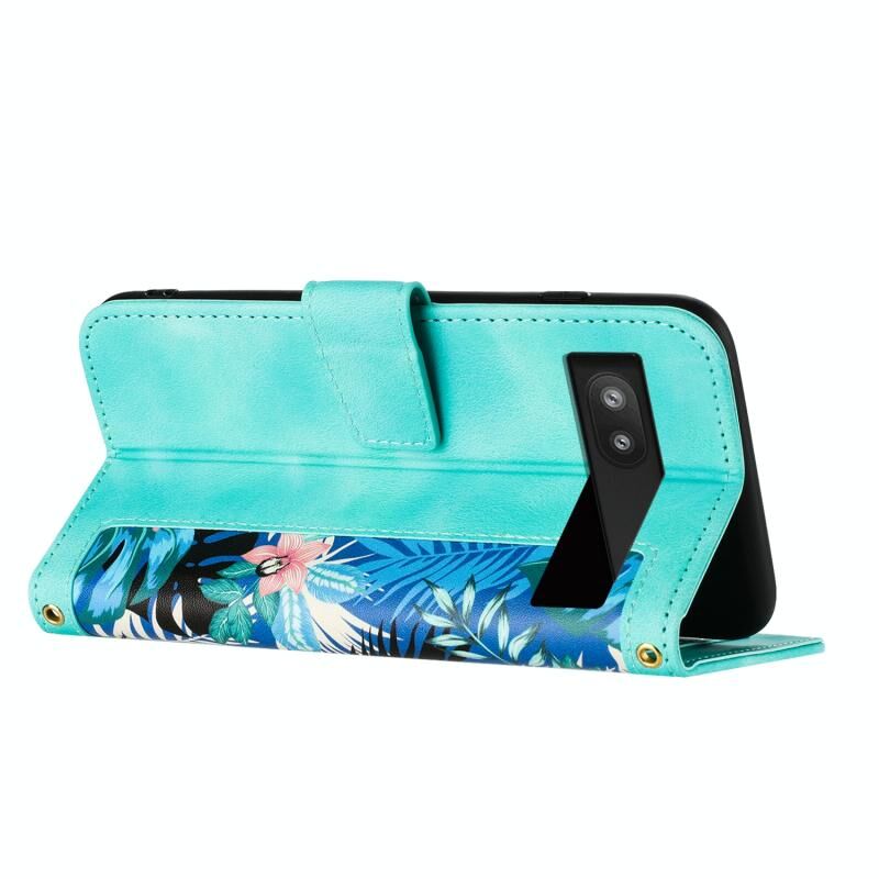 Θήκη τηλεφώνου από δέρμα με λουλουδάτο σχέδιο για Google Pixel 6a με κορδόνι (Ανοιχτό Μπλε)