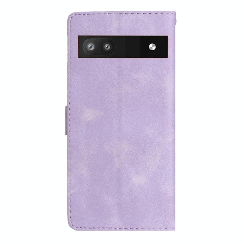 Θήκη τηλεφώνου δερμάτινη με ανάγλυφο σχέδιο λουλουδιών και πεταλούδας για Google Pixel 6a (Μαύρο)