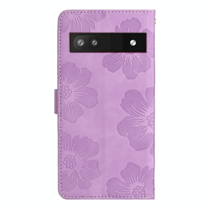 Για το Google Pixel 6a λουλούδι ανάγλυφο μοτίβο δερμάτινη θήκη τηλεφώνου (μωβ)