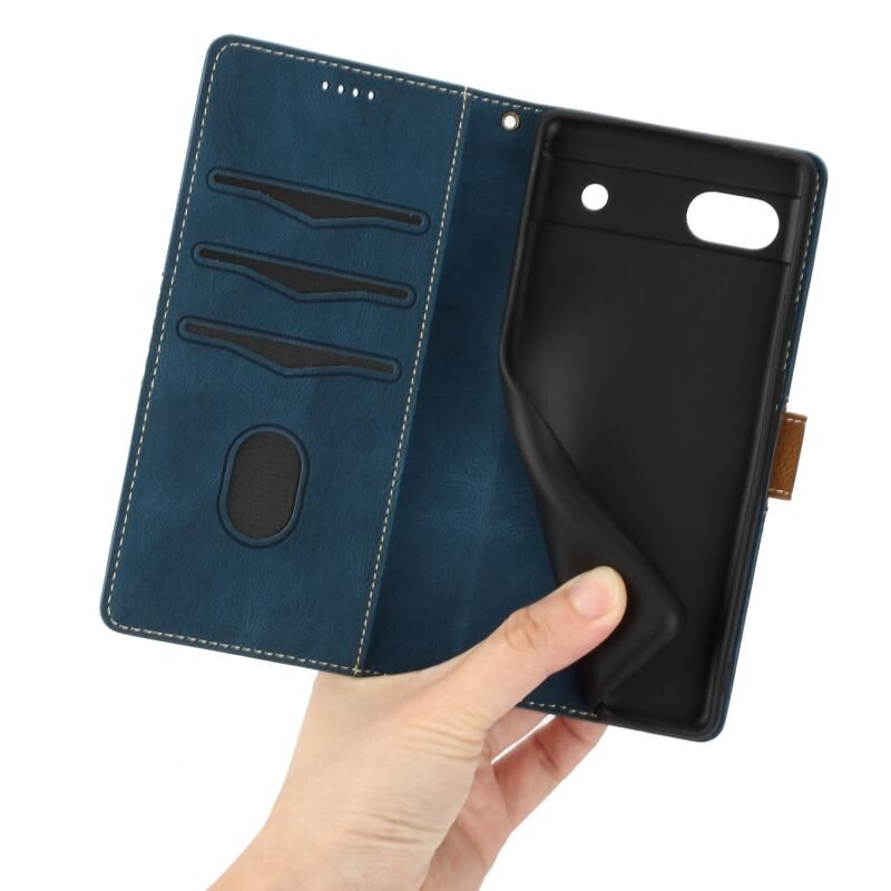 Για το Google Pixel 6a Δερμάτινη θήκη τηλεφώνου με ραφή πλέγματος και κορδόνι (μπλε)
