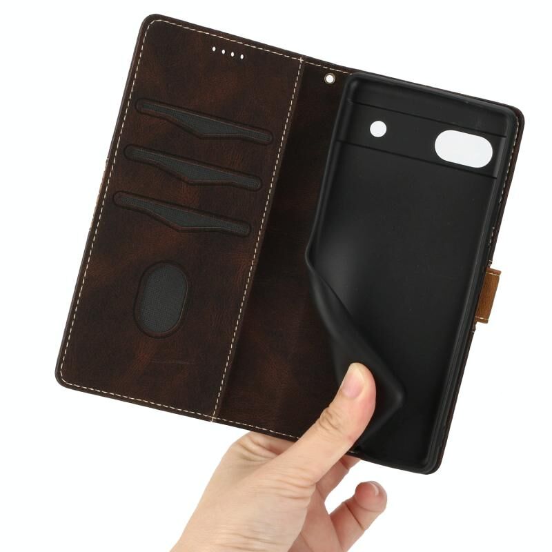 Για το Google Pixel 6a Δερμάτινη θήκη τηλεφώνου με ραφή πλέγματος και κορδόνι (καφέ)