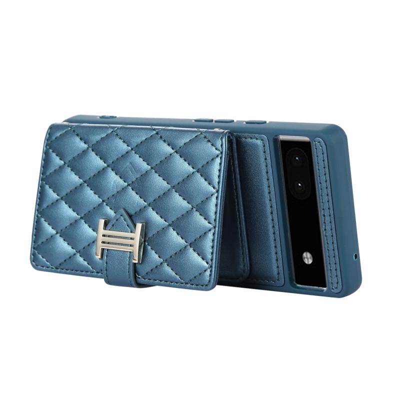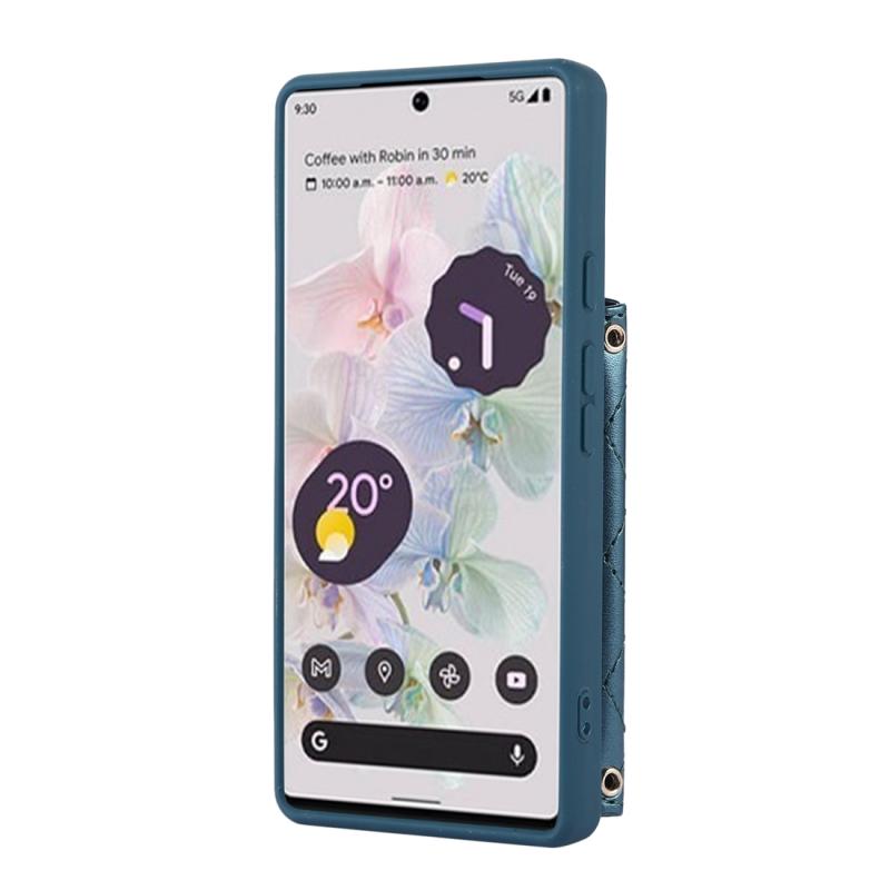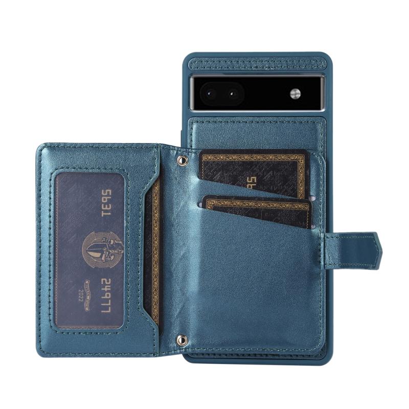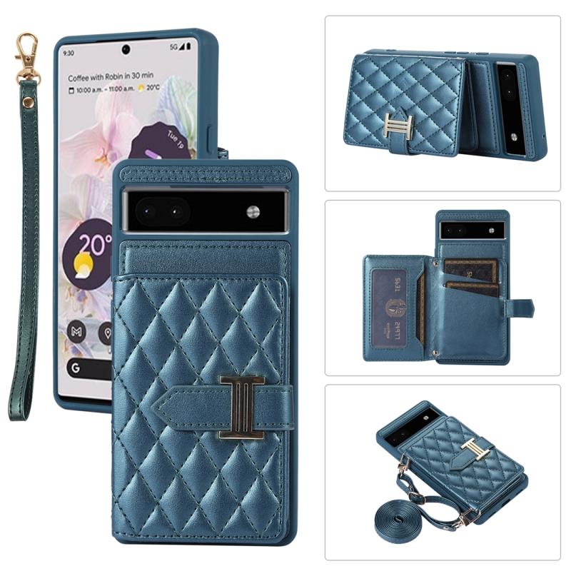 For Google Pixel 6a Horizontal Card Bag Phone Case with Dual Lanyard(Dark Green)