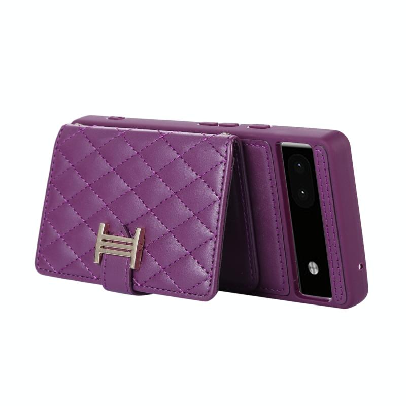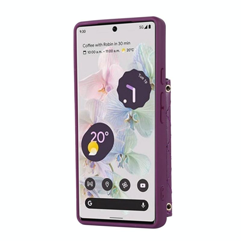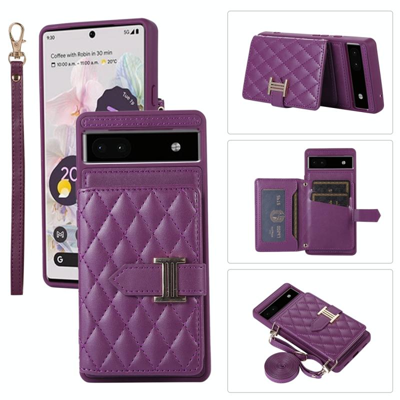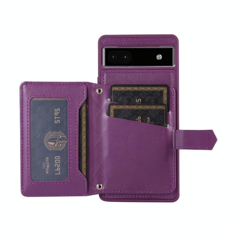 For Google Pixel 6a Horizontal Card Bag Phone Case with Dual Lanyard(Dark Purple)
