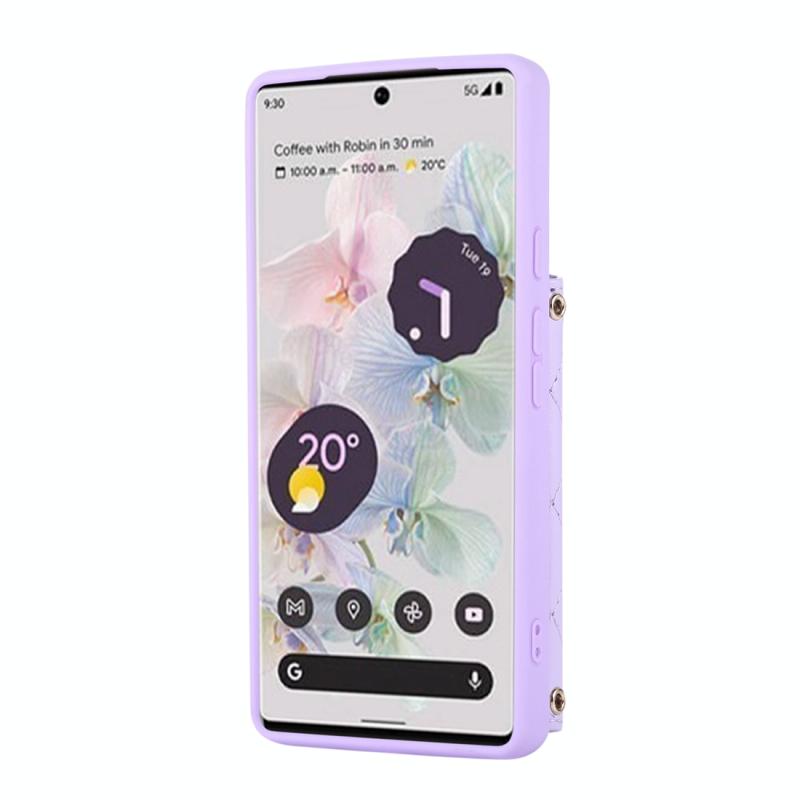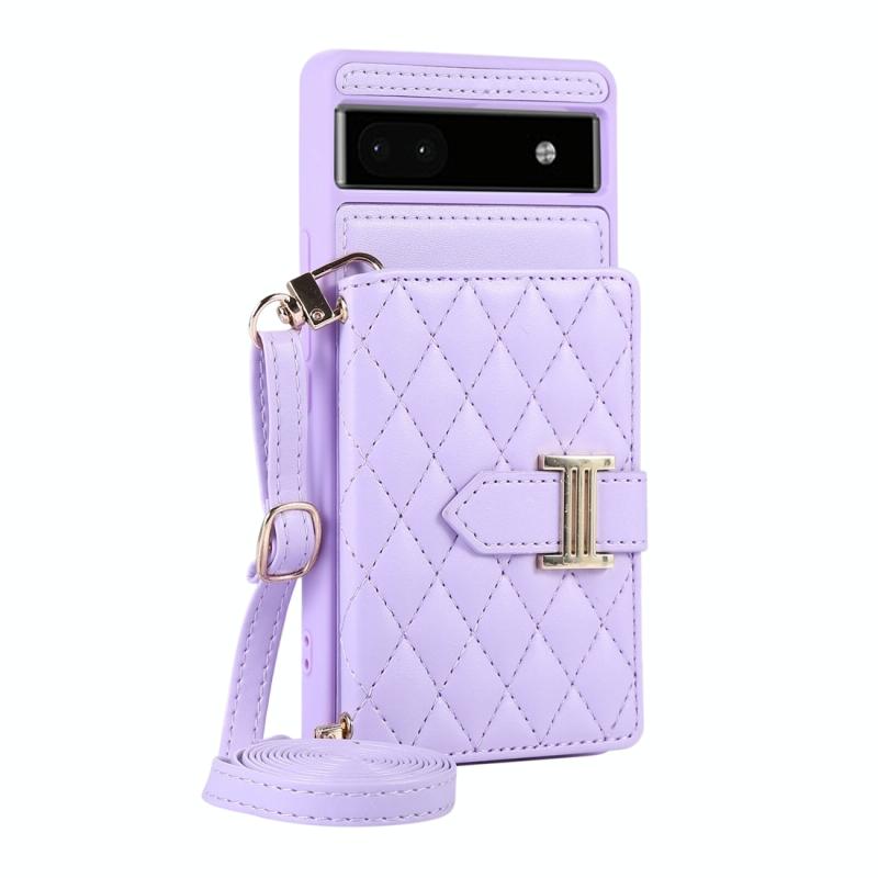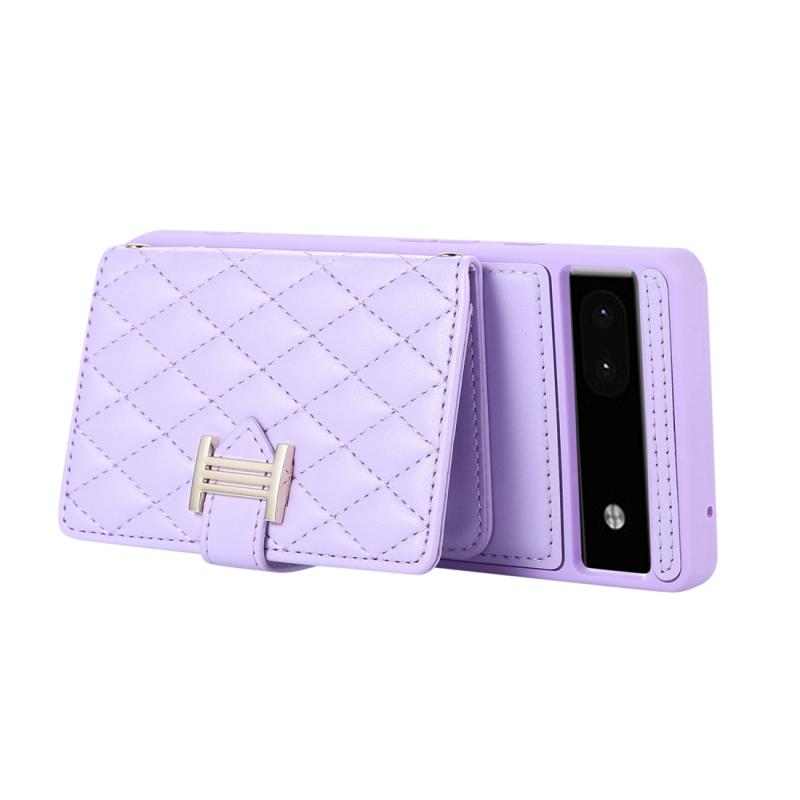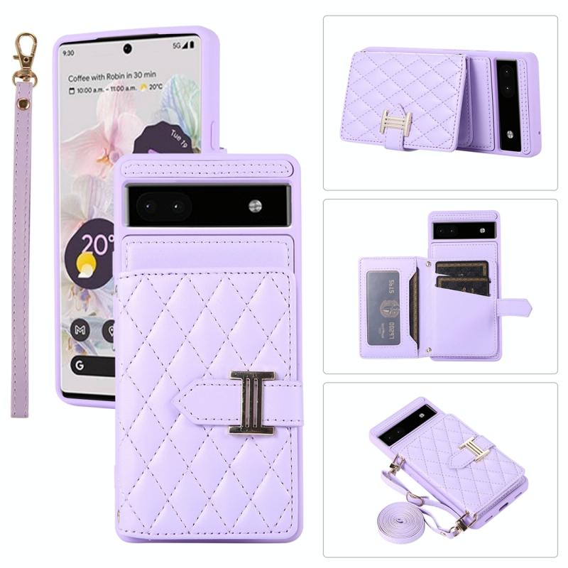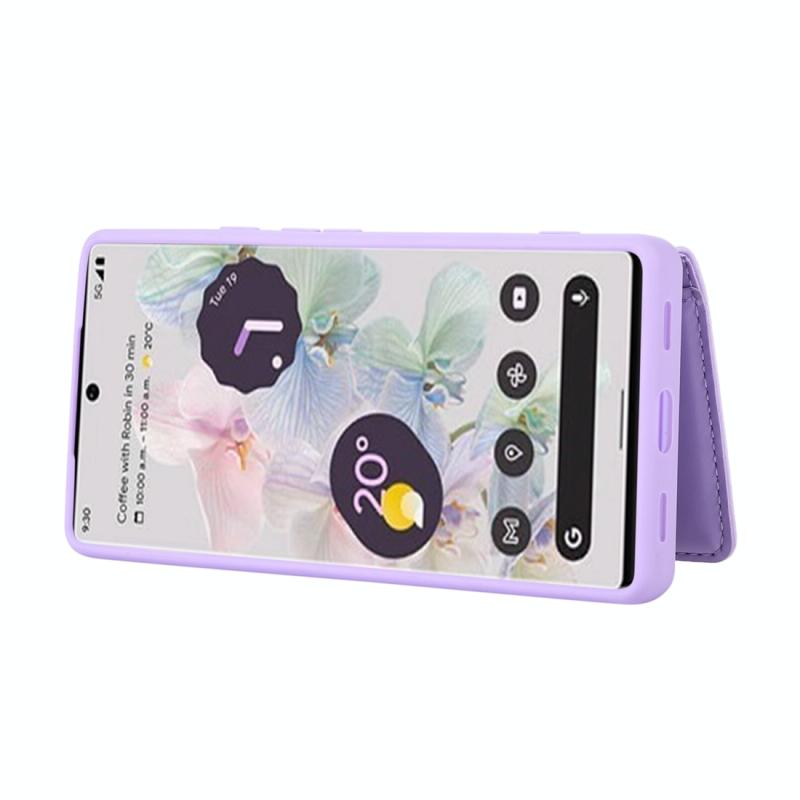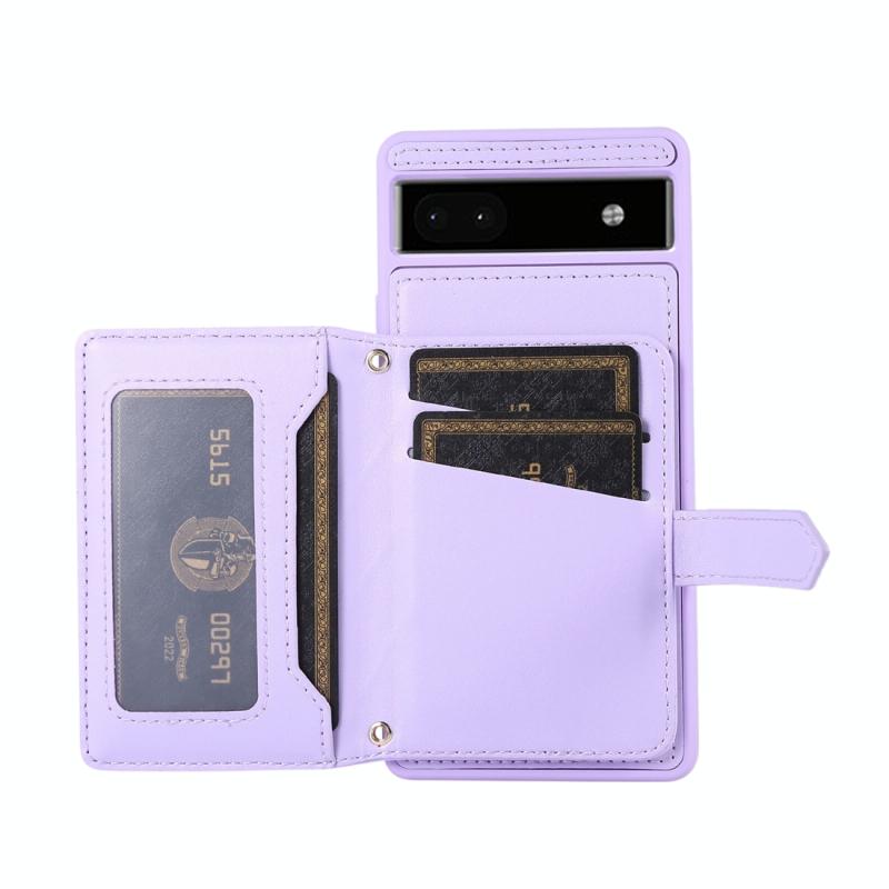 For Google Pixel 6a Horizontal Card Bag Phone Case with Dual Lanyard(Purple)