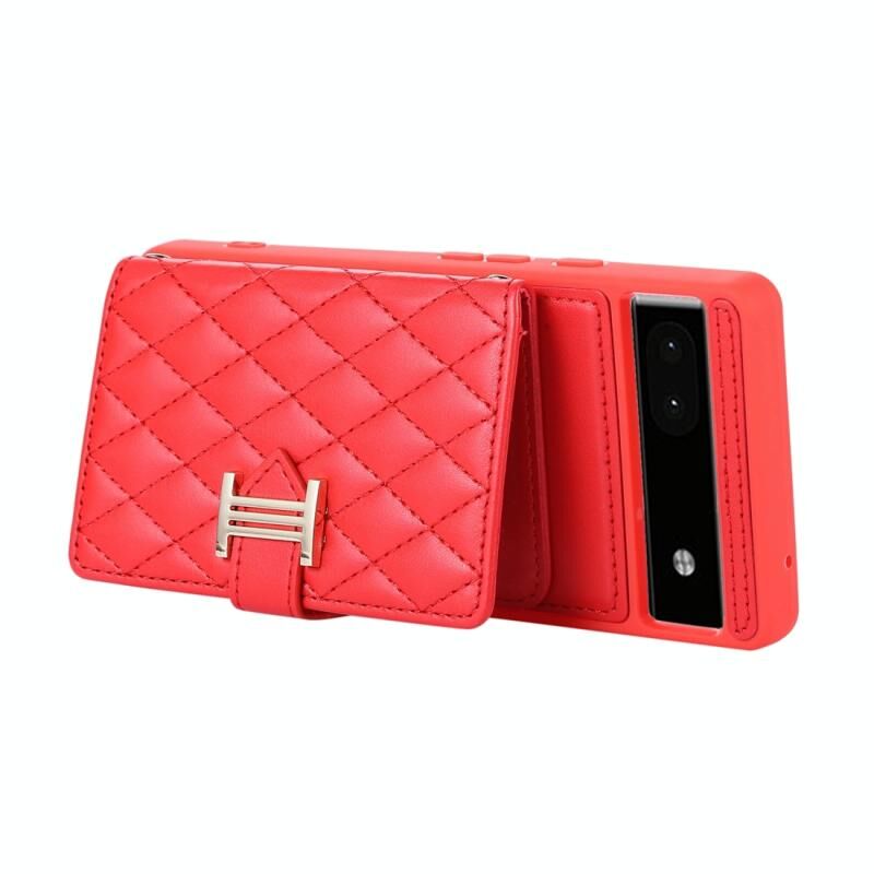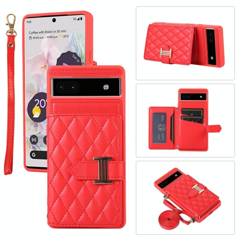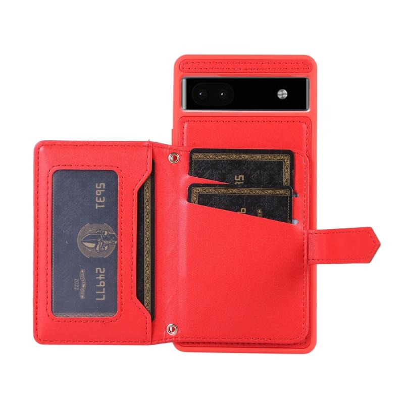 For Google Pixel 6a Horizontal Card Bag Phone Case with Dual Lanyard(Red)