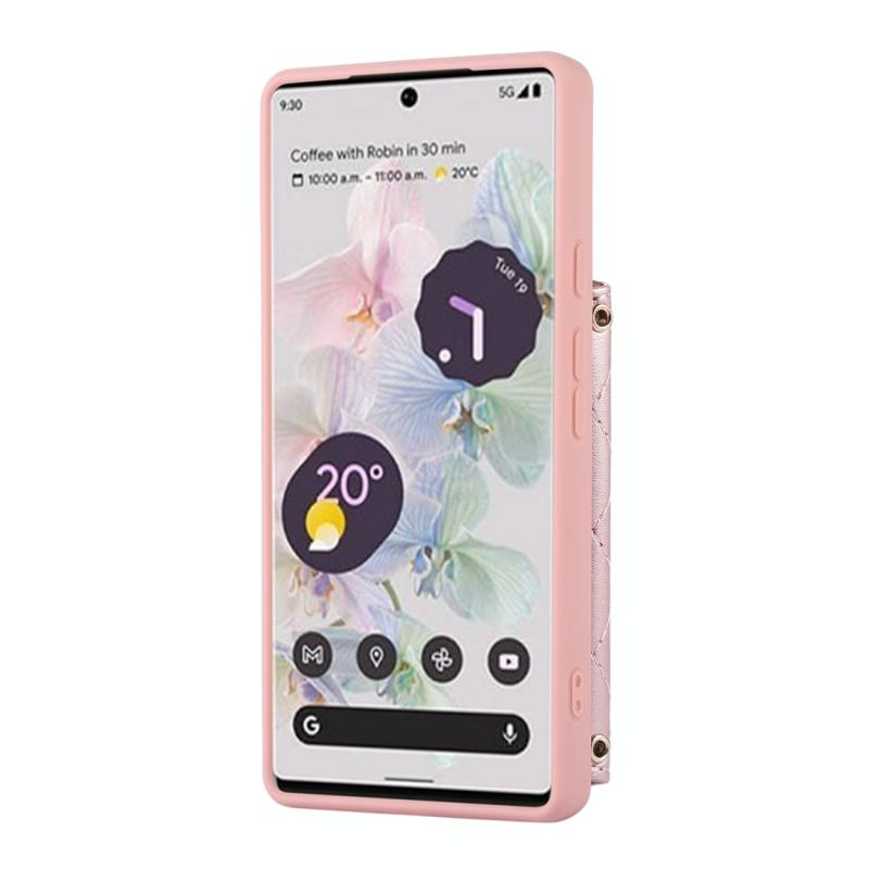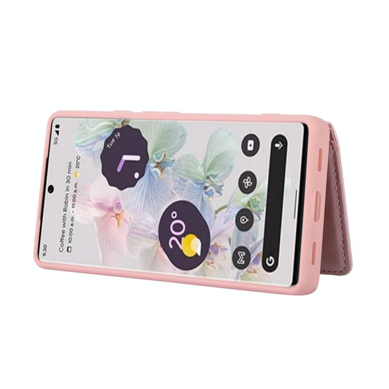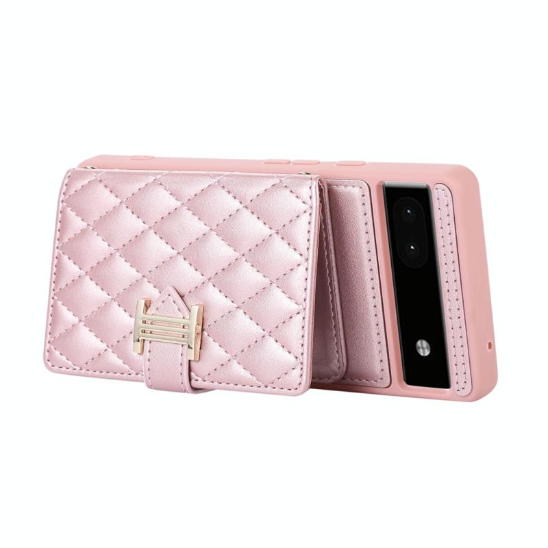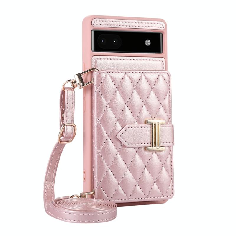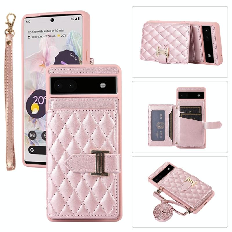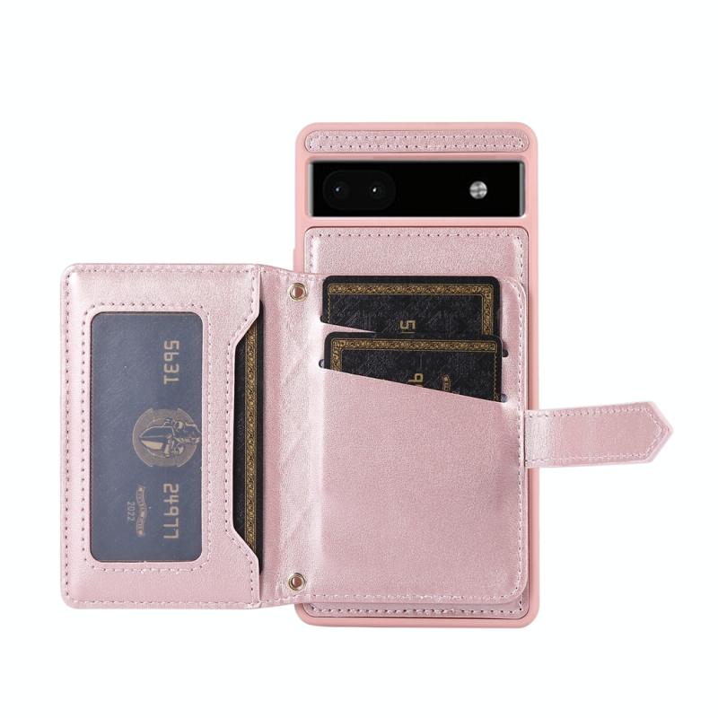 For Google Pixel 6a Horizontal Card Bag Phone Case with Dual Lanyard(Rose Gold)