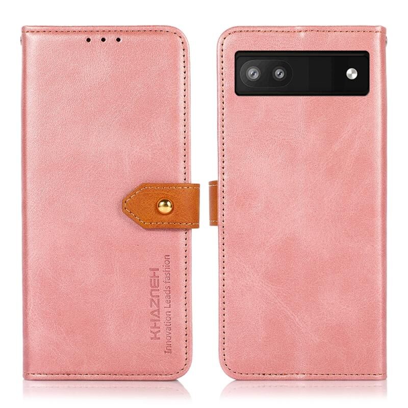 Για το Google Pixel 6a KHAZNEH Διπλό χρώμα δέρμα αγελάδας υφή οριζόντια Flip δέρμα τηλέφωνο υπόθεση (Rose Gold)