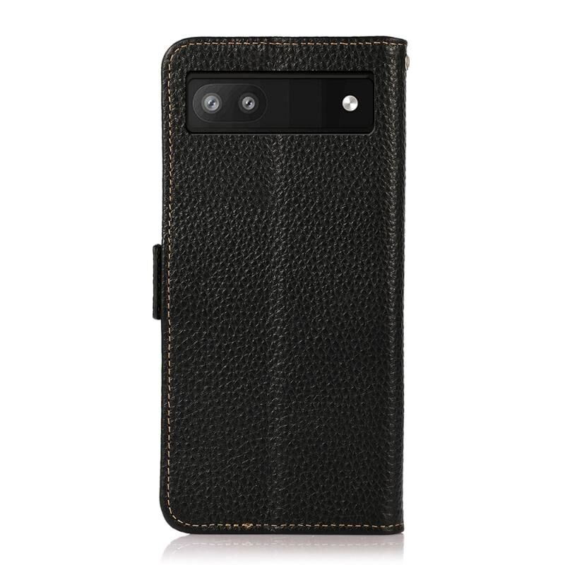 Θήκη KHAZNEH για Google Pixel 6a με μαγνητικό κλείσιμο, από γνήσιο δέρμα Litchi και προστασία RFID (Μαύρο)