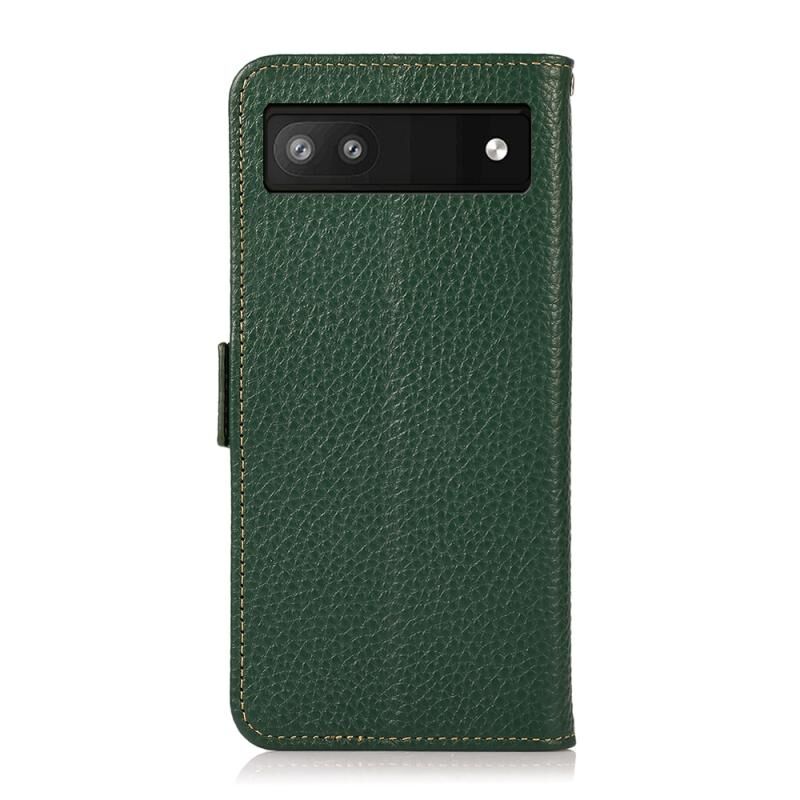 Θήκη KHAZNEH για Google Pixel 6a με μαγνητικό κλείσιμο, από γνήσιο δέρμα Litchi και προστασία RFID (Μαύρο)