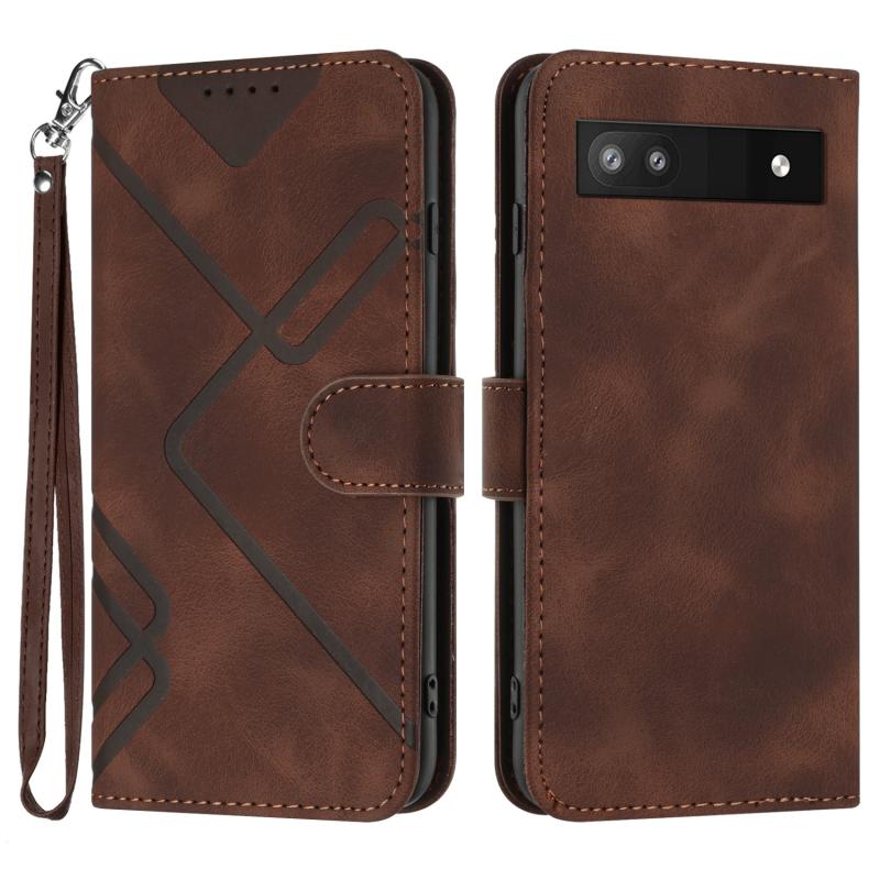 For Google Pixel 6a Line Pattern Skin Feel Leather Phone Case(Coffee)