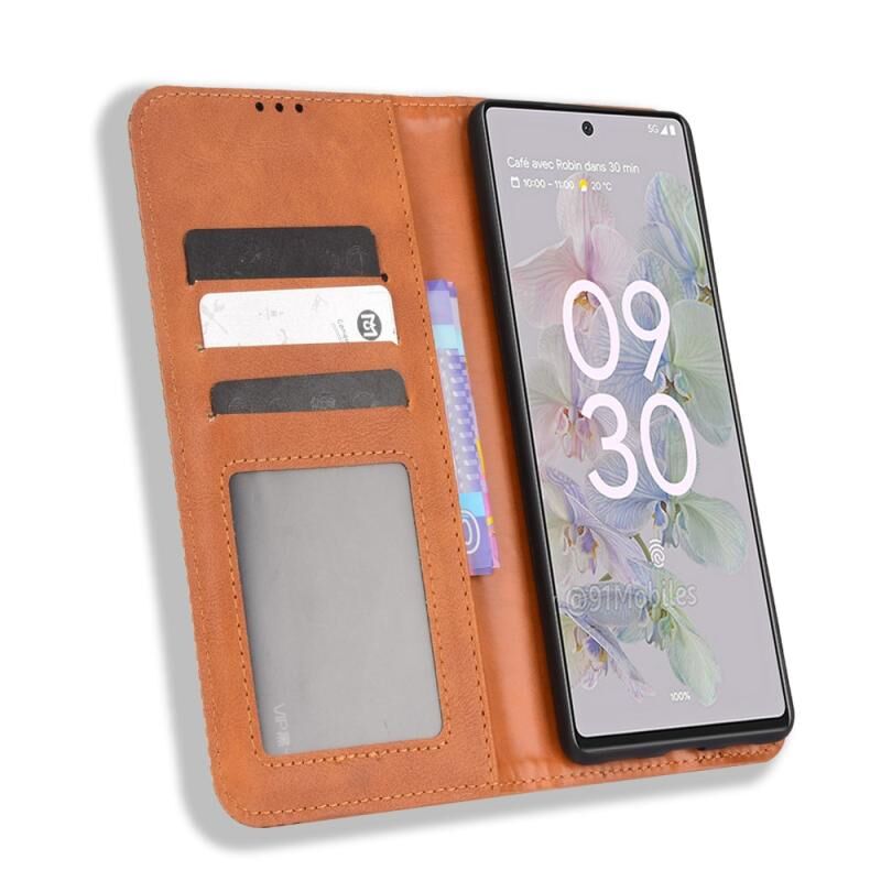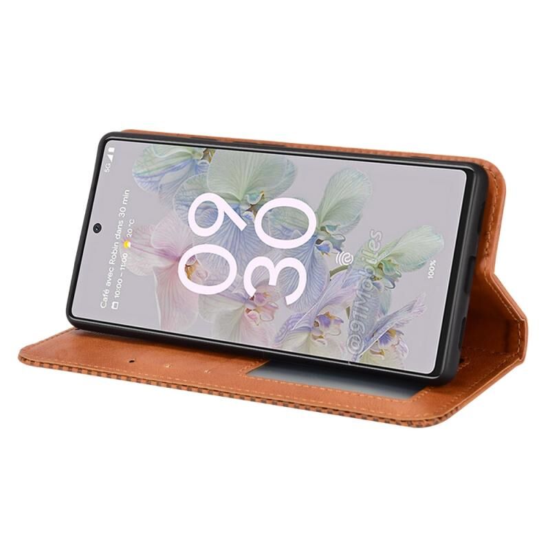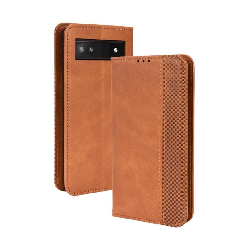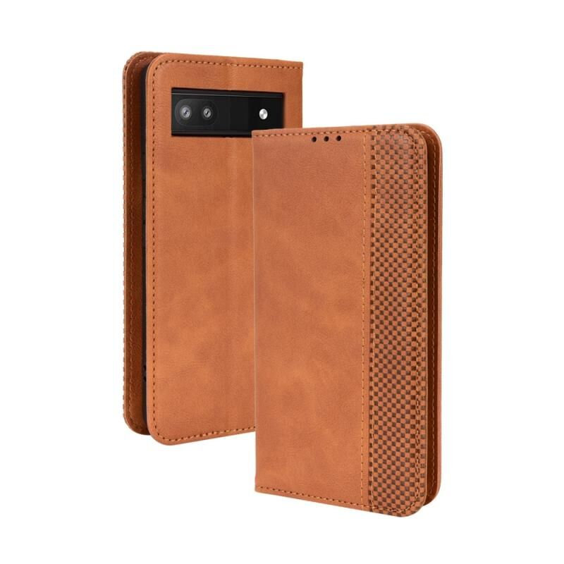 Για το Google Pixel 6a Μαγνητική πόρπη Retro Υφή δερμάτινη θήκη (καφέ)