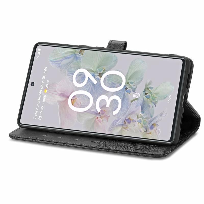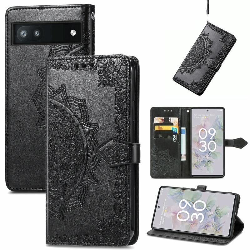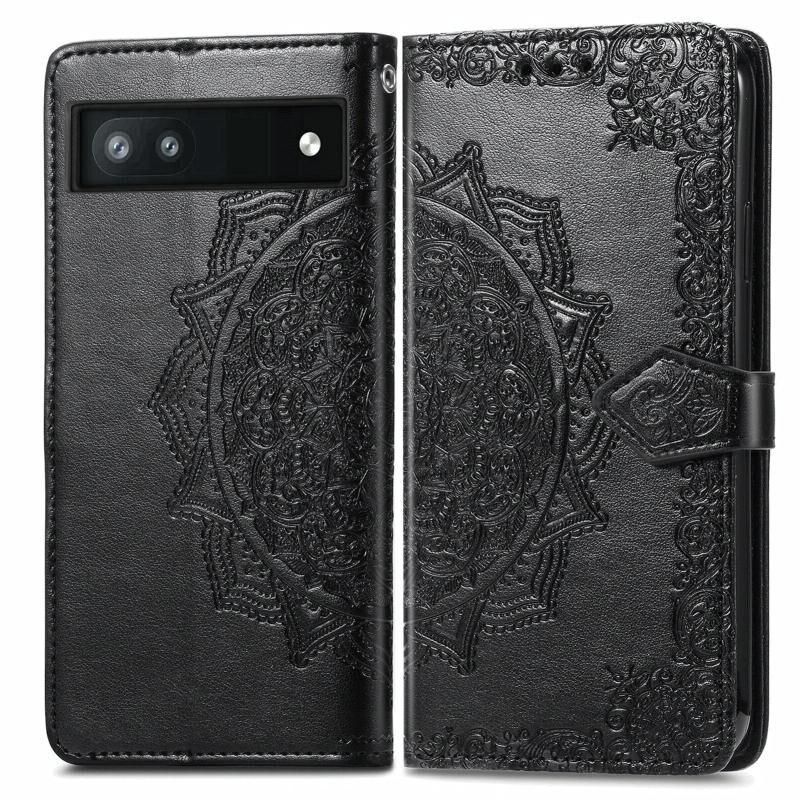 Για το Google Pixel 6a Mandala λουλούδι ανάγλυφο Flip δερμάτινη θήκη τηλεφώνου (Μαύρο)
