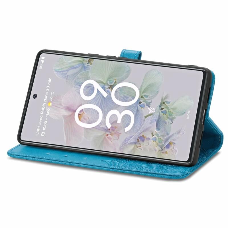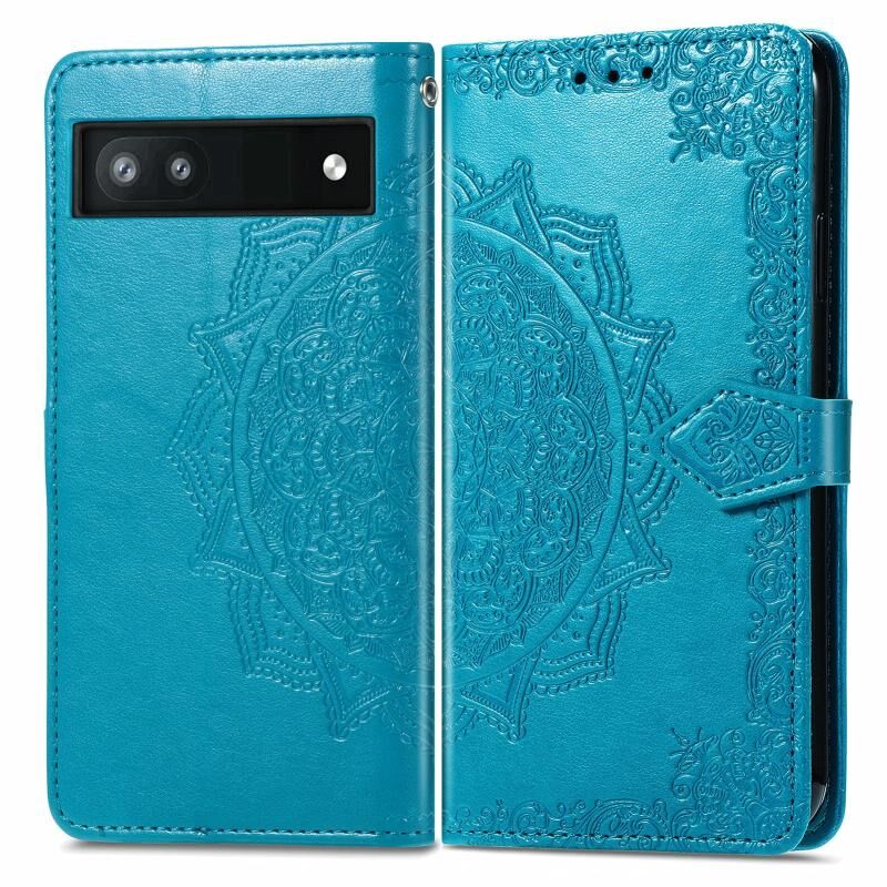 Για το Google Pixel 6a Mandala λουλούδι ανάγλυφο Flip δερμάτινη θήκη τηλεφώνου (μπλε)