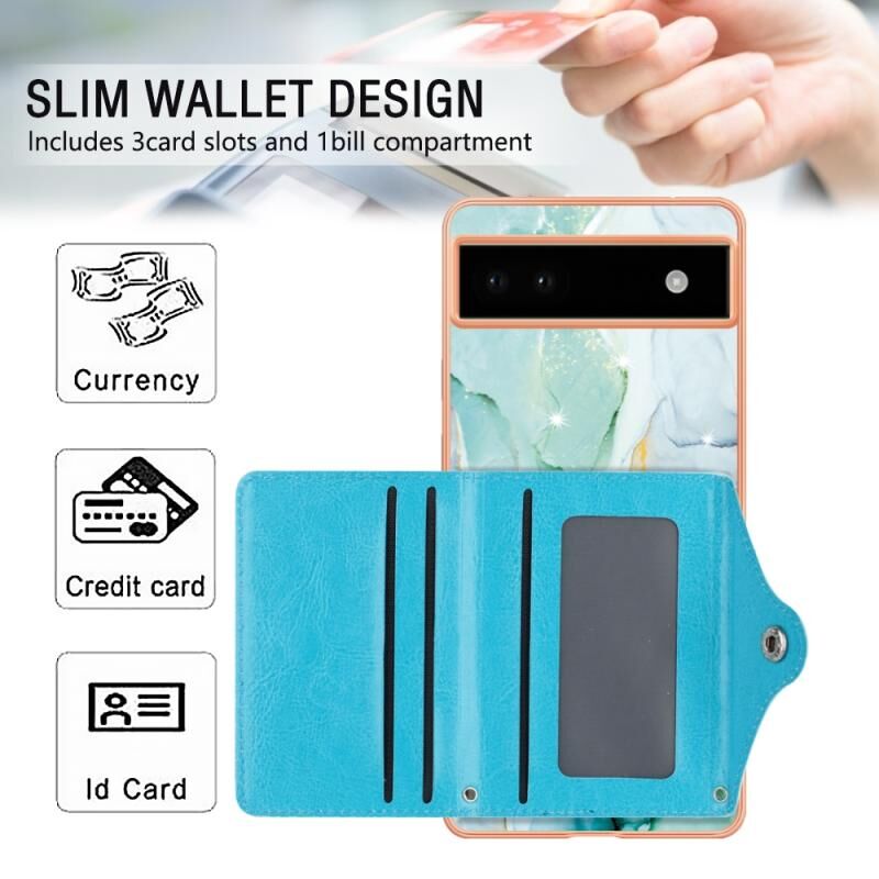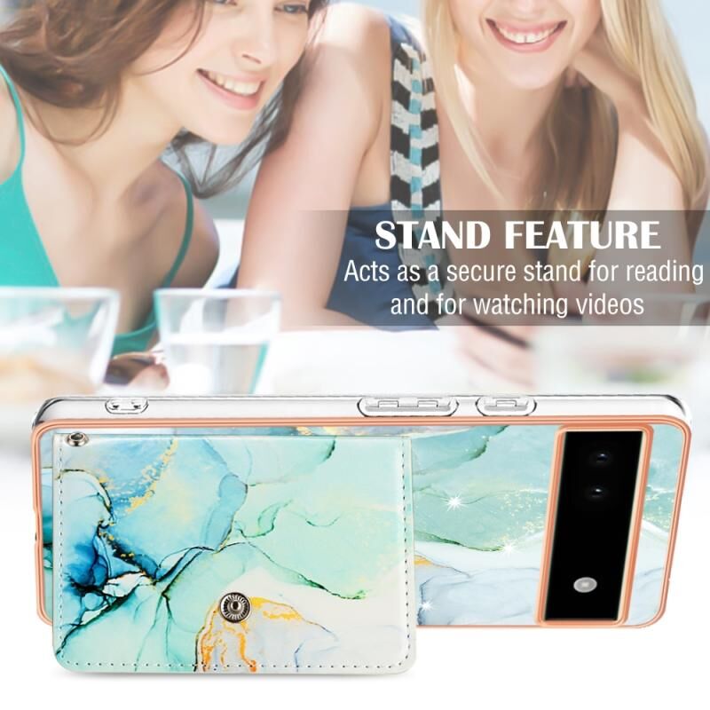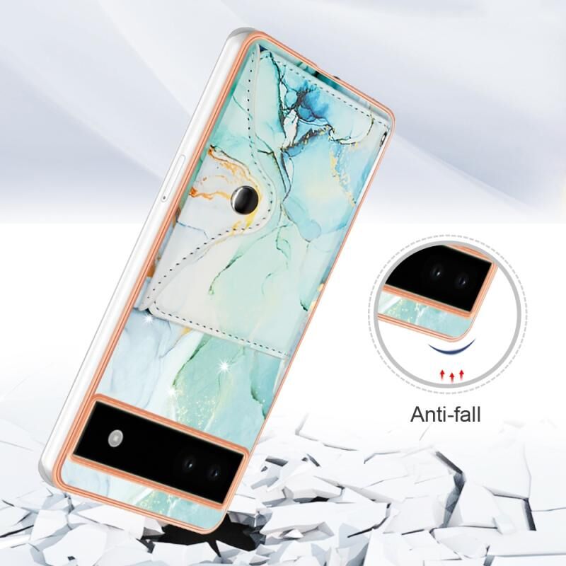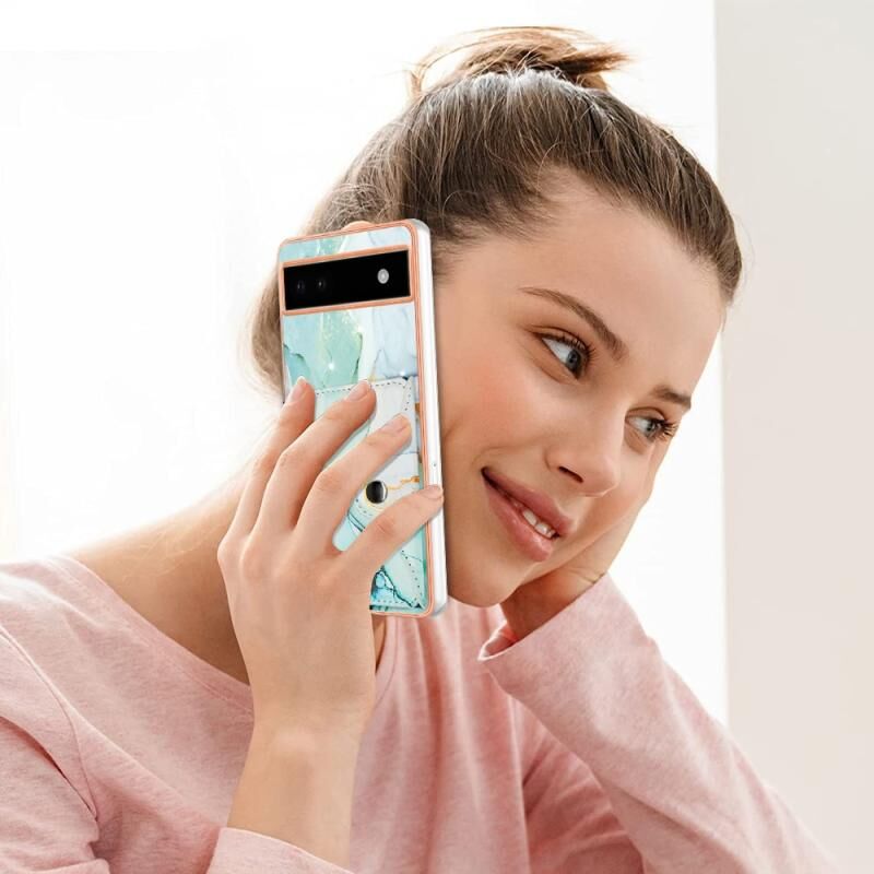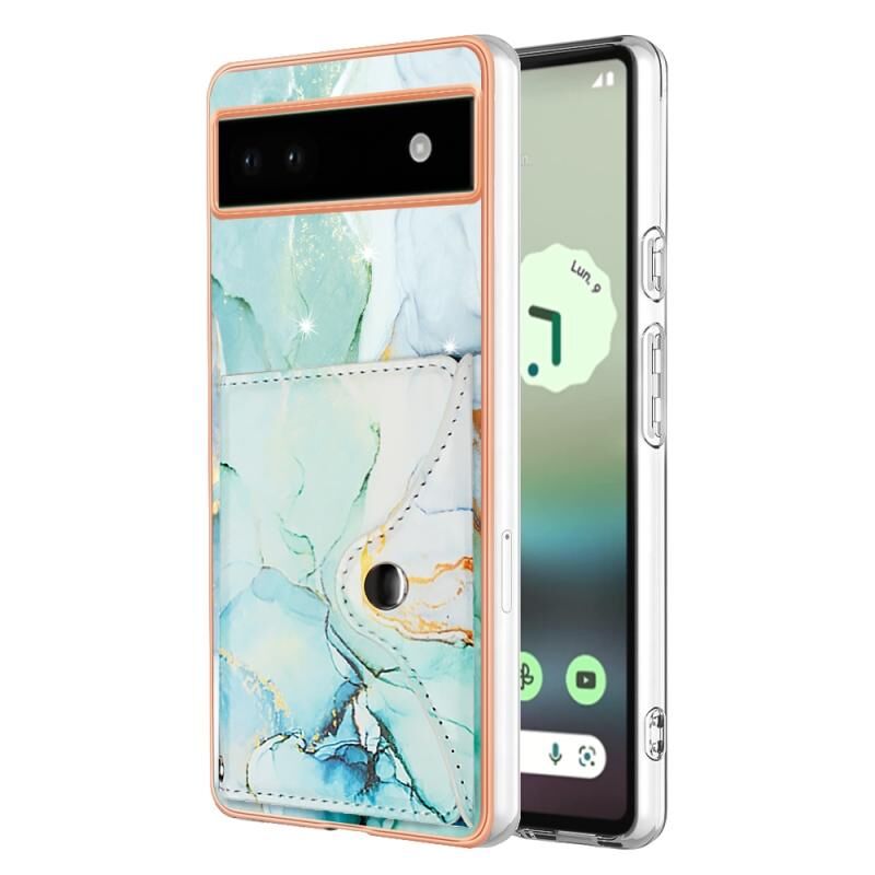 Θήκη τηλεφώνου με κάρτες IMD σε μοτίβο μαρμάρου για Google Pixel 6a (Λευκό Γαλαξιακό Μάρμαρο)