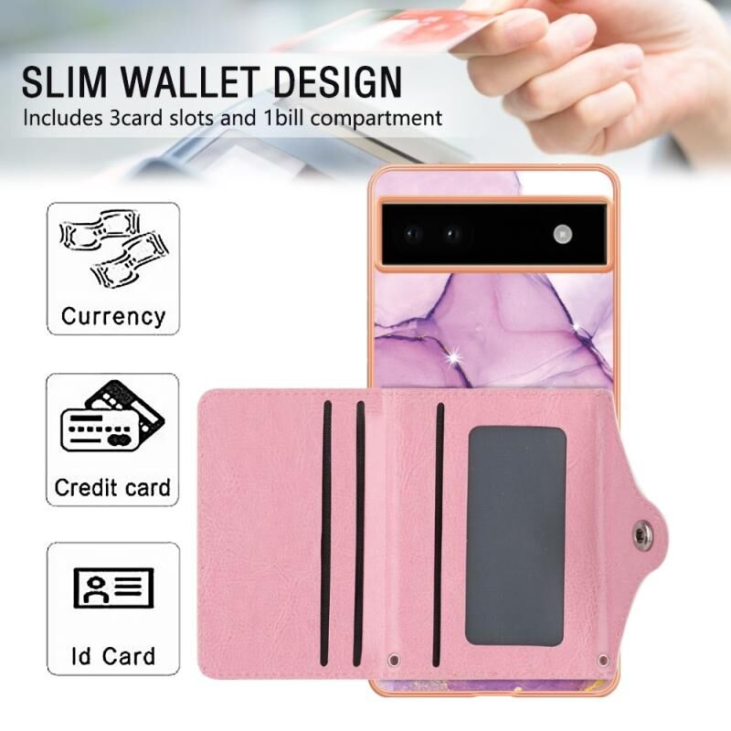 Θήκη τηλεφώνου με κάρτες IMD σε μοτίβο μαρμάρου για Google Pixel 6a (Λευκό Γαλαξιακό Μάρμαρο)