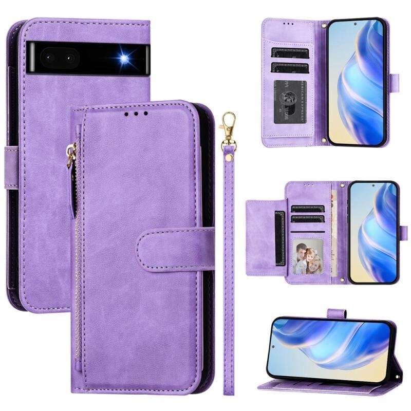 Για το Google Pixel 6a Υποδοχές πολλαπλών καρτών φερμουάρ πορτοφόλι δερμάτινη θήκη τηλεφώνου (μωβ)