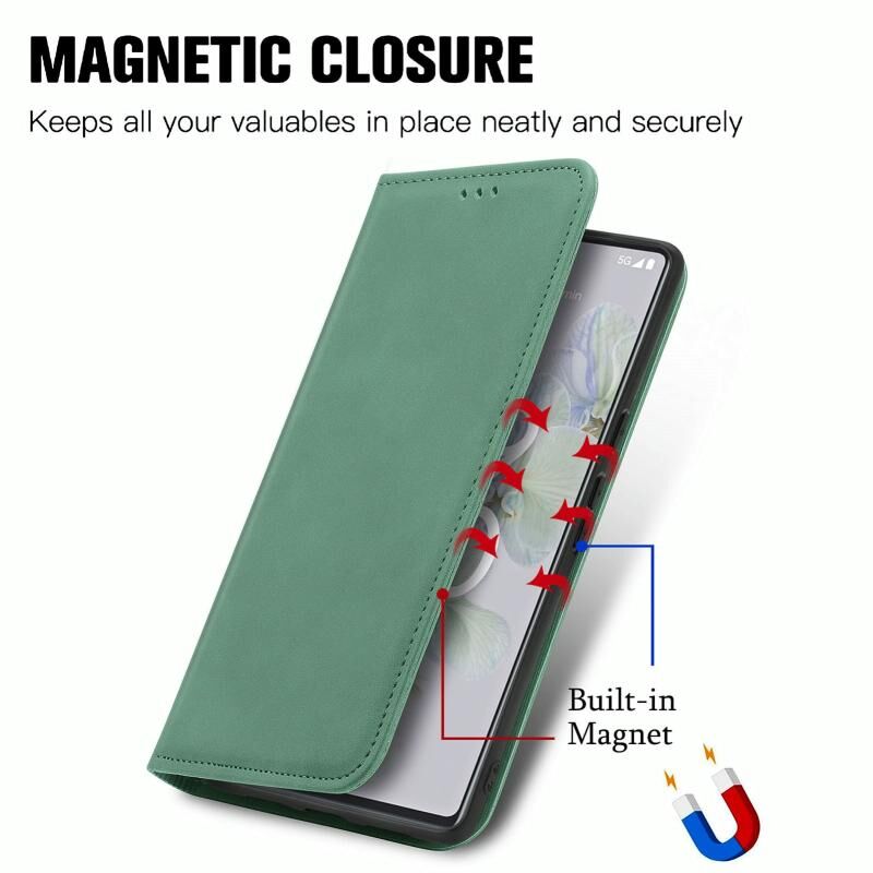 Για το Google Pixel 6a Ρετρό δέρμα αίσθηση μαγνητική οριζόντια Flip δέρμα τηλέφωνο υπόθεση (πράσινο)