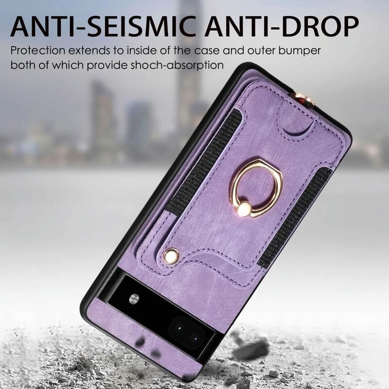 Για το Google Pixel 6A Ρετρό δέρμα αίσθηση δαχτυλίδι πολυ-κάρτα RFID πορτοφόλι υπόθεση τηλεφώνου με κορδόνι (μωβ)