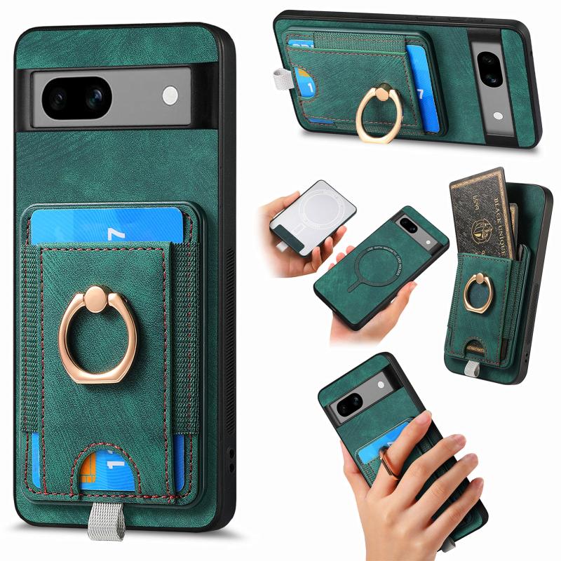 For Google Pixel 6A Retro Splitable Magnetic Card Bag Leather Phone Case(Green)