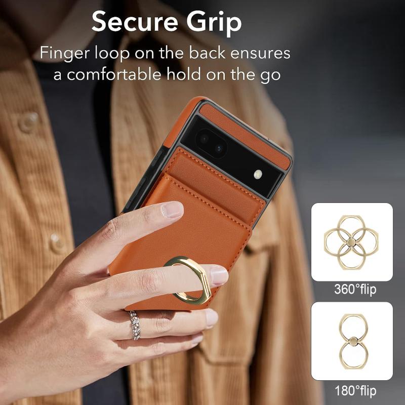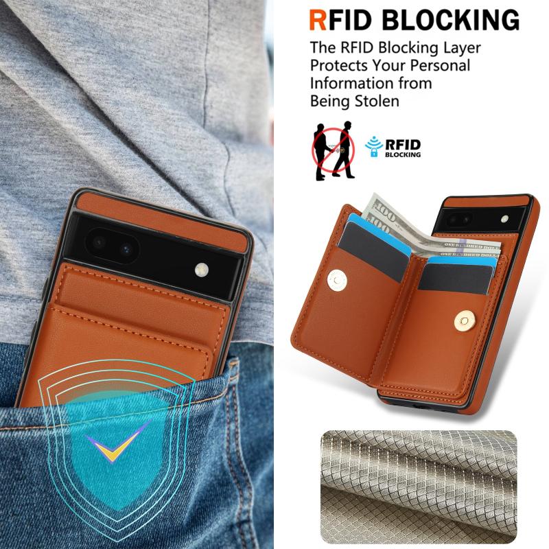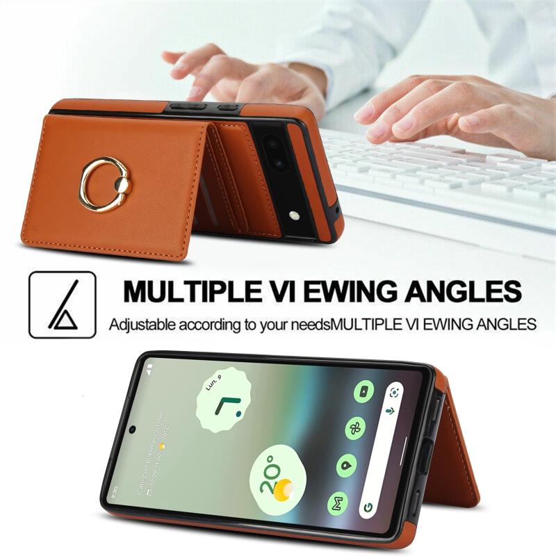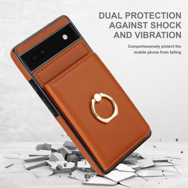 For Google Pixel 6a RFID Anti-theft Card Ring Holder Phone Case(Brown)