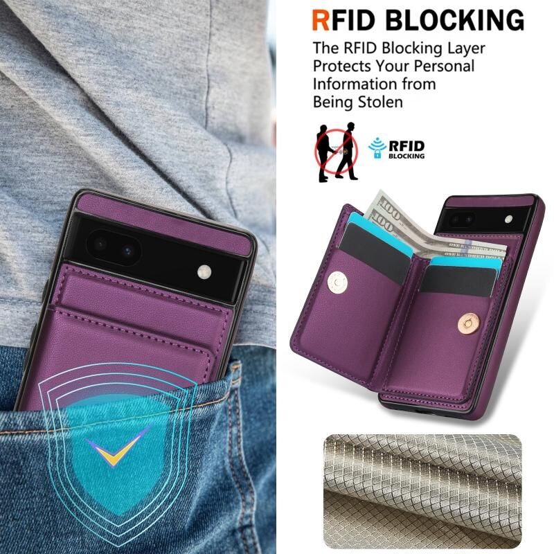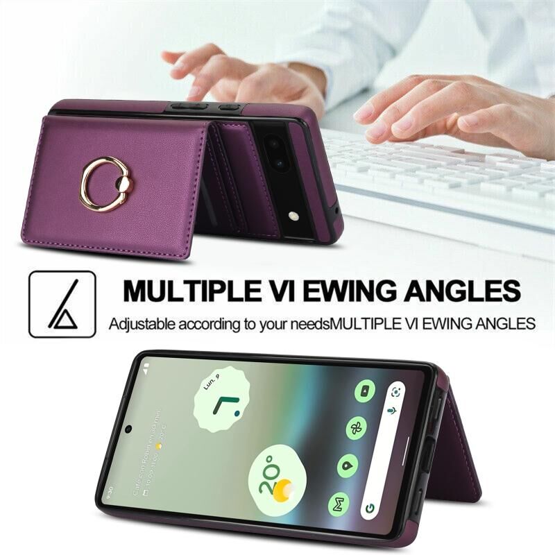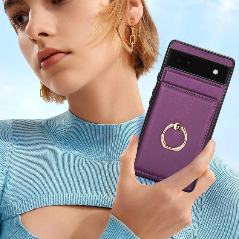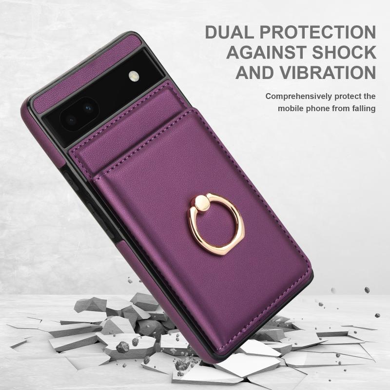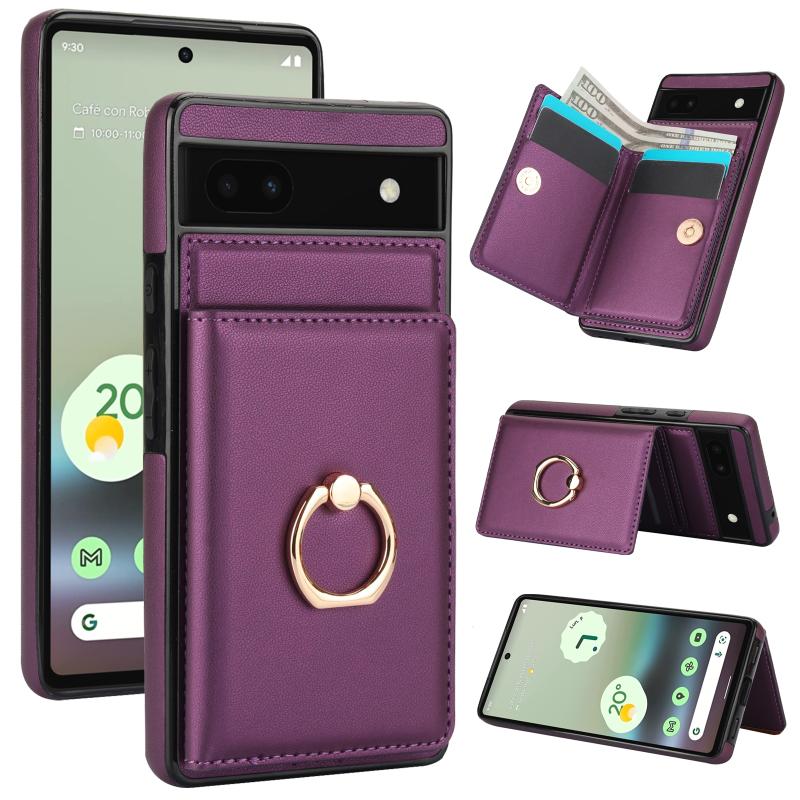 For Google Pixel 6a RFID Anti-theft Card Ring Holder Phone Case(Dark Purple)