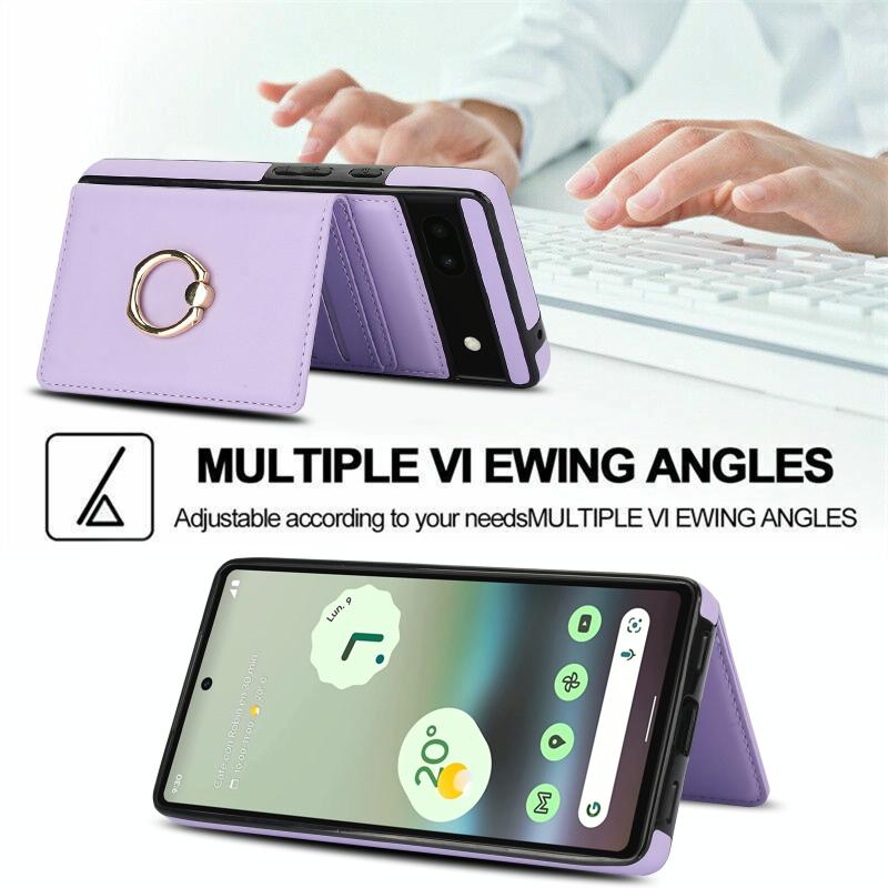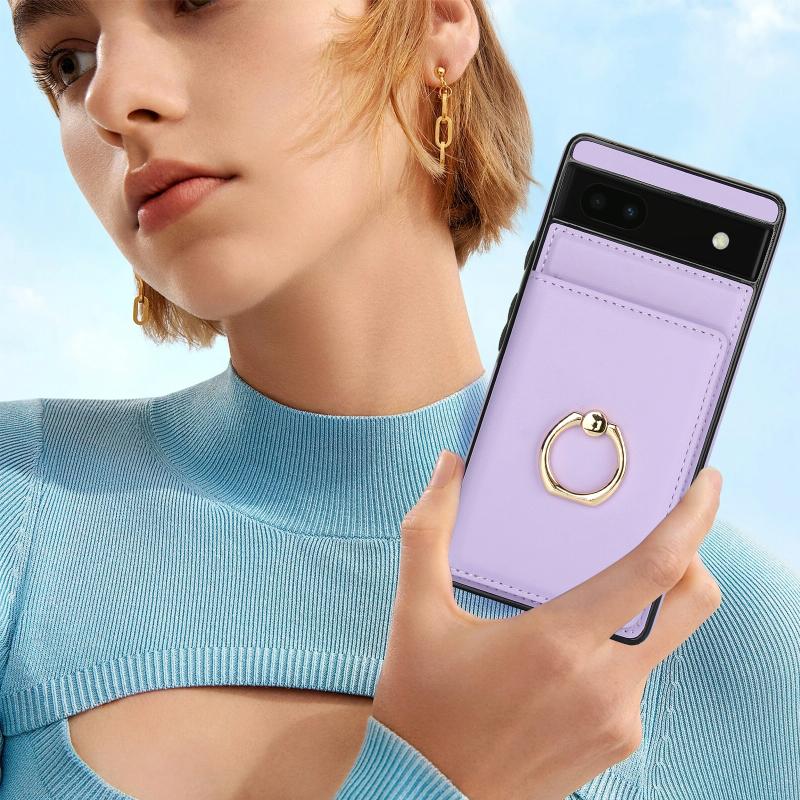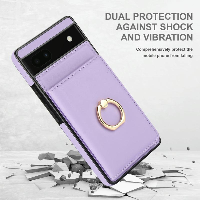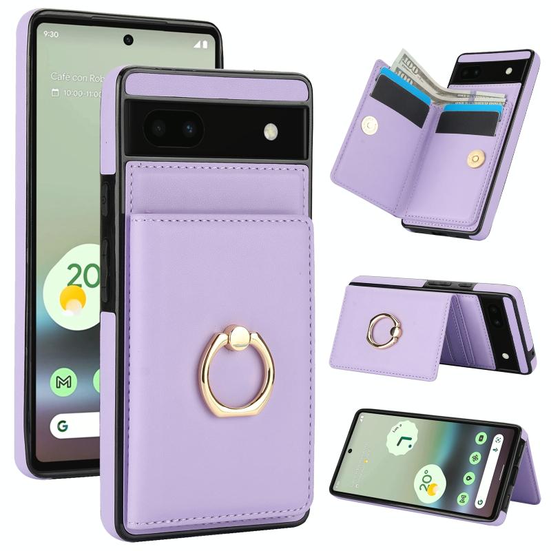 For Google Pixel 6a RFID Anti-theft Card Ring Holder Phone Case(Purple)