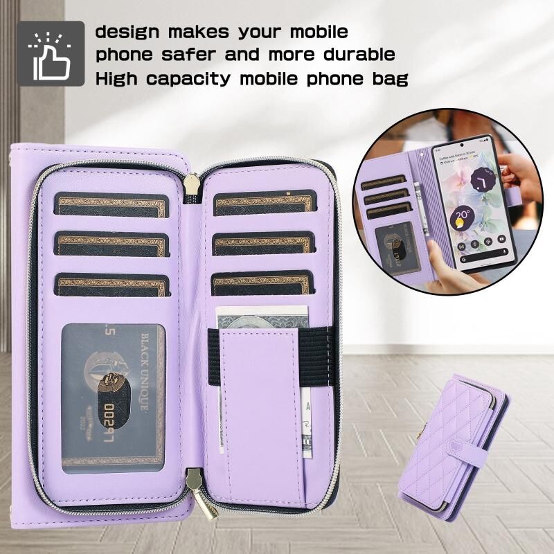 5. Λειτουργία πορτοφολιού πολλαπλών καρτών: Πολλαπλές υποδοχές καρτών και τσέπες πορτοφολιού με φερμουάρ, θήκες μετρητών μπορούν να αποθηκεύσουν τις πιστωτικές σας κάρτες και τα καθημερινά μικρά χαρτονομίσματα.