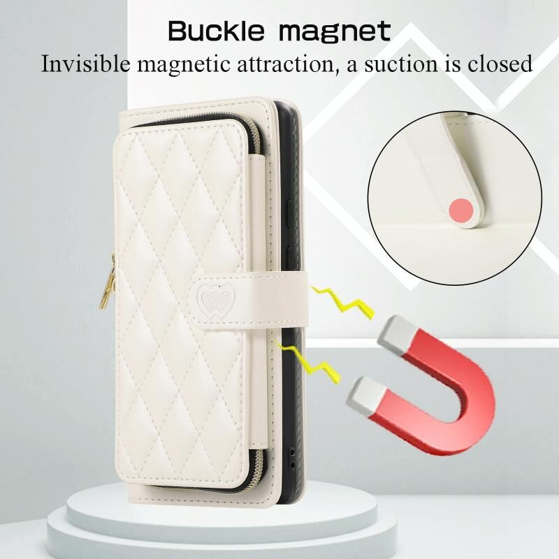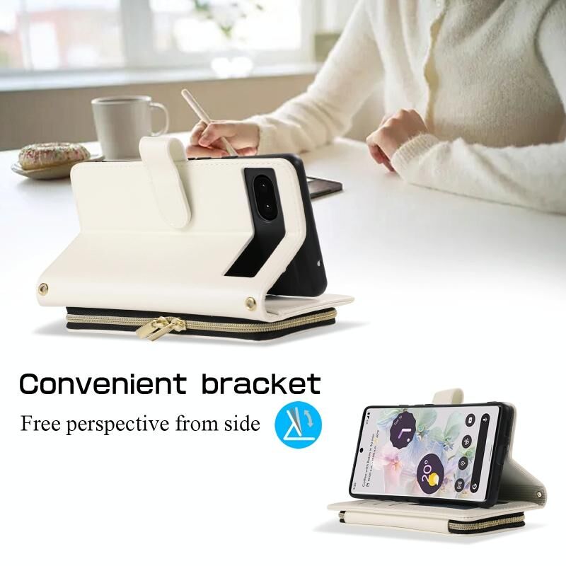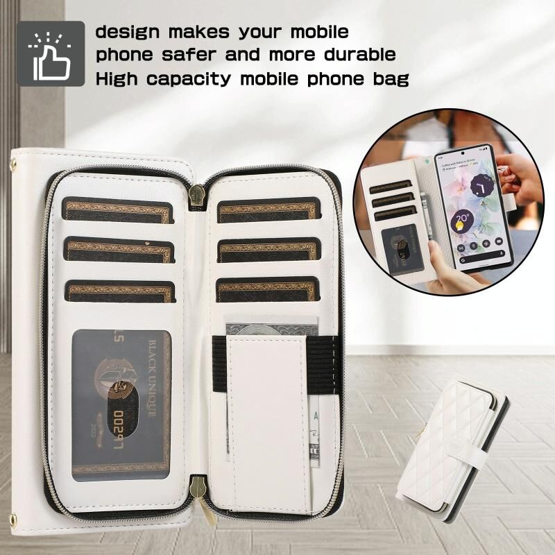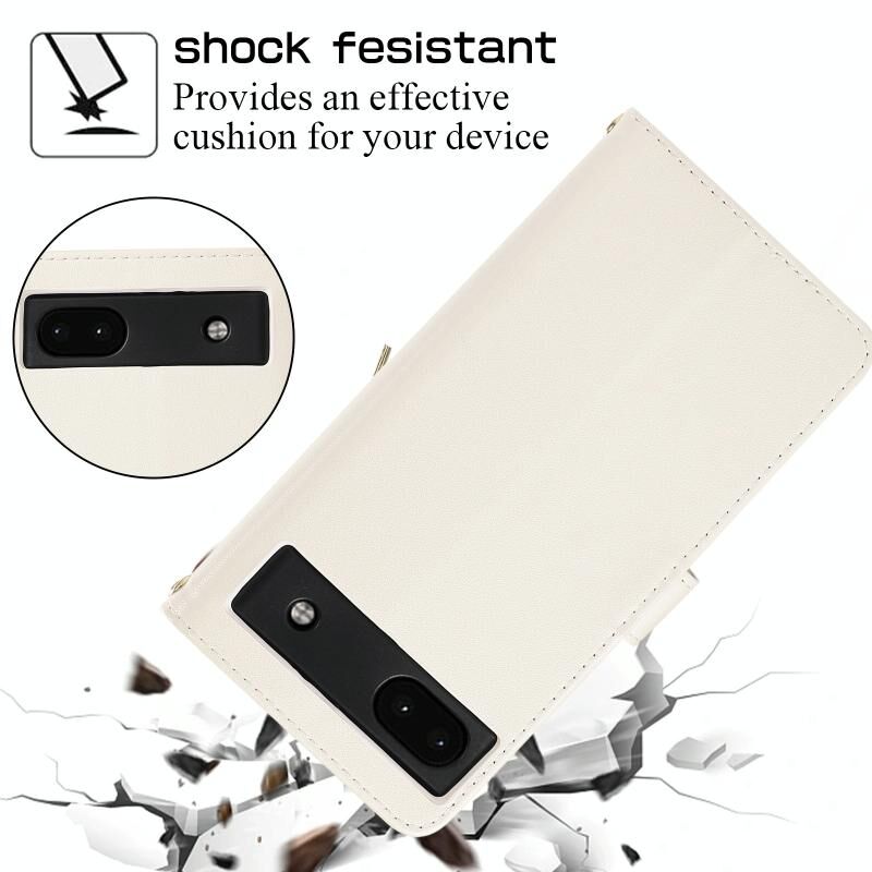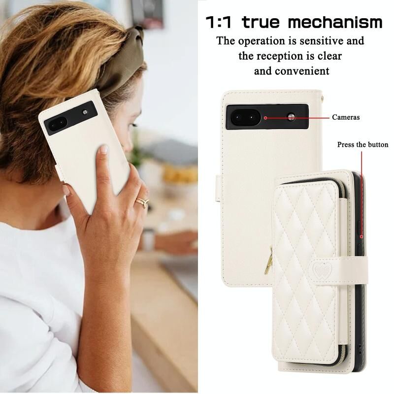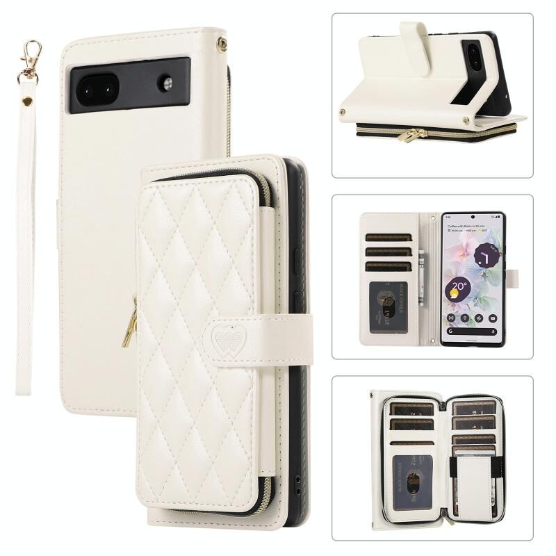 Για το Google Pixel 6a Ρομβοειδής πλήρης φερμουάρ πορτοφόλι δερμάτινη θήκη τηλεφώνου (λευκό)