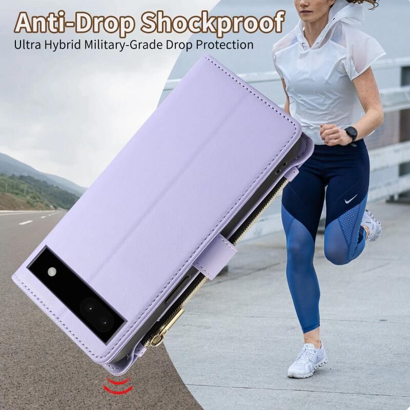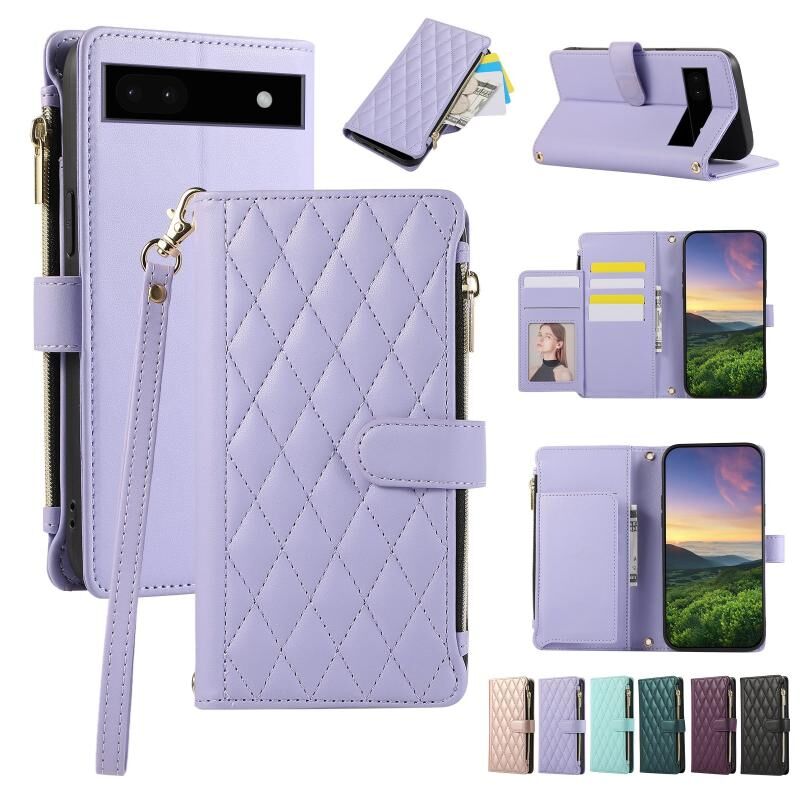 Για το Google Pixel 6a Ρομβοειδές φερμουάρ πορτοφόλι δερμάτινη θήκη τηλεφώνου (μωβ)