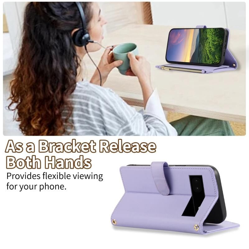 5. Λειτουργία πορτοφολιού πολλαπλών καρτών: Πολλαπλές υποδοχές καρτών και τσέπες πορτοφολιού με φερμουάρ, θήκες μετρητών μπορούν να αποθηκεύσουν τις πιστωτικές σας κάρτες και τα καθημερινά μικρά χαρτονομίσματα.