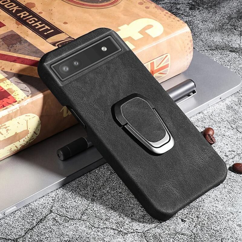 Για το Google Pixel 6a Ring Holder PU θήκη τηλεφώνου (μαύρο)