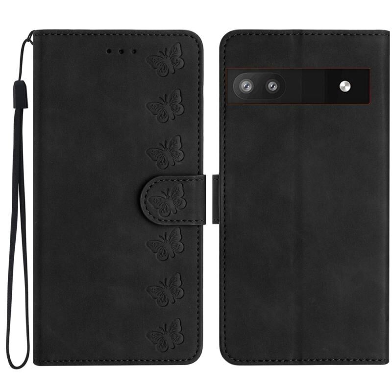 Για το Google Pixel 6a Επτά πεταλούδες ανάγλυφη δερμάτινη θήκη τηλεφώνου (Μαύρο)