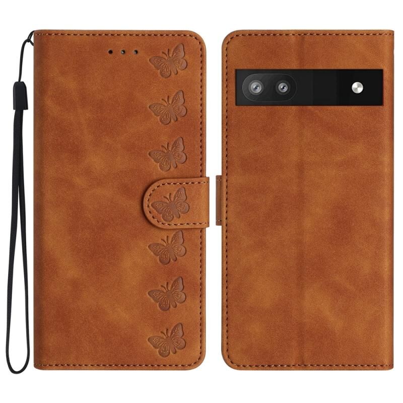 Για το Google Pixel 6a Επτά πεταλούδες ανάγλυφη δερμάτινη θήκη τηλεφώνου (καφέ)