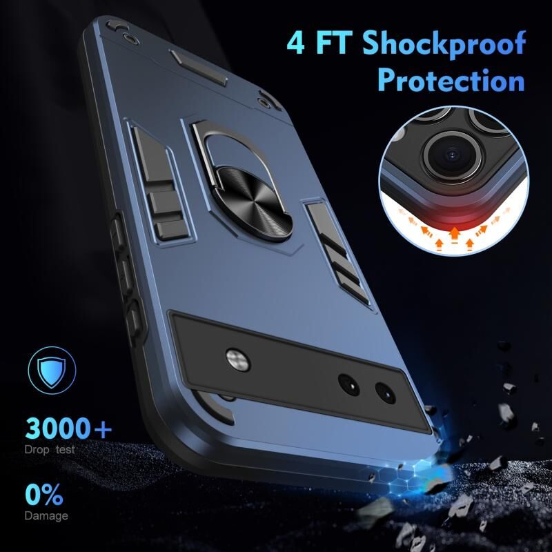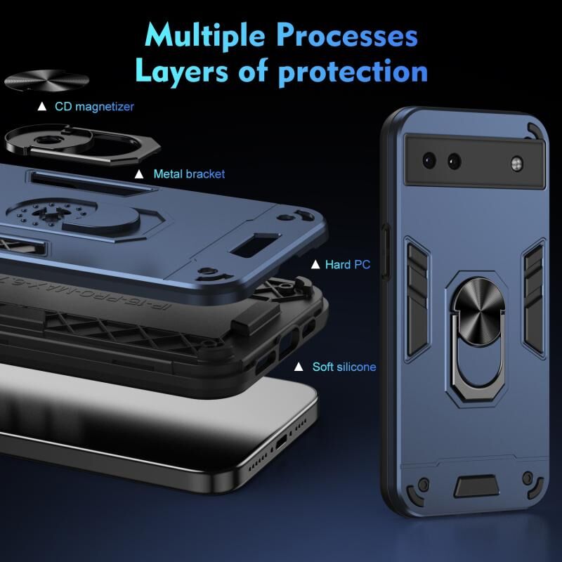 Θήκη τηλεφώνου για Google Pixel 6a με μεταλλική βάση δακτυλιδιού ανθεκτική στις κρούσεις (Μπλε)