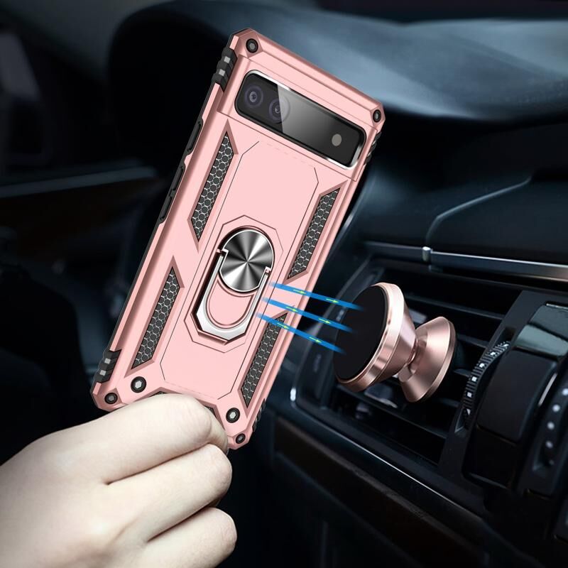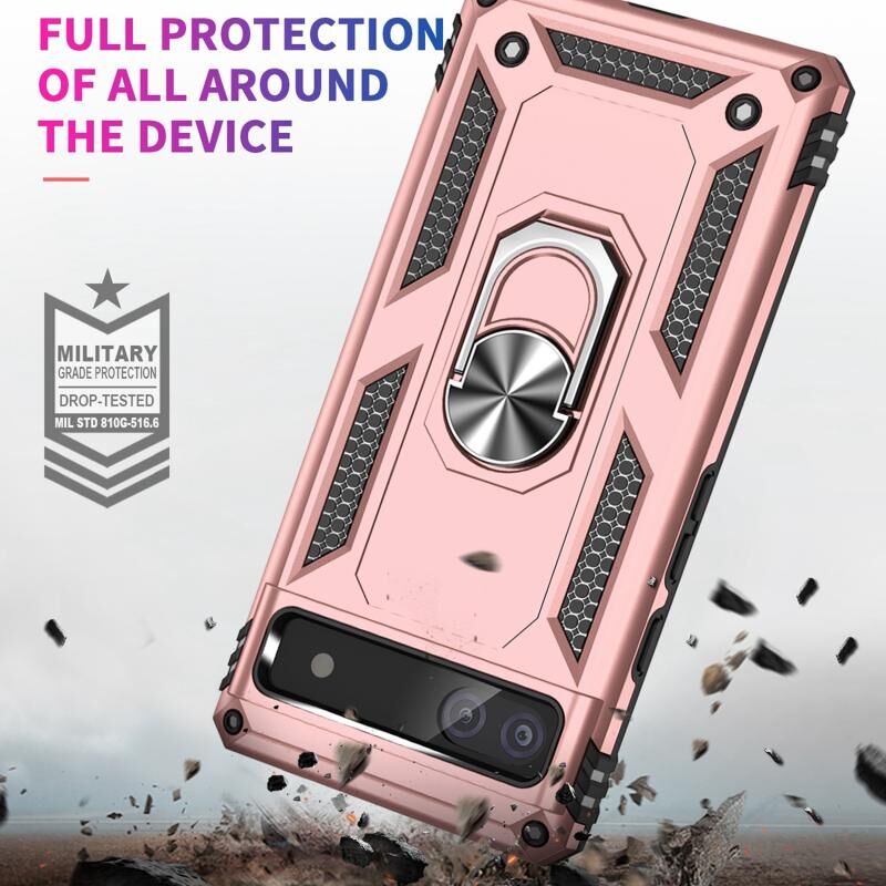 Για το Google Pixel 6A Shockproof TPU + PC Προστατευτική θήκη με περιστρεφόμενη θήκη 360 μοιρών (ροζ χρυσό)