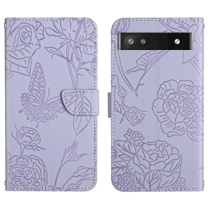 Θήκη τηλεφώνου από ανάγλυφο δέρμα για Google Pixel 6a, με σχέδιο πεταλούδας και παιώνιας (Κόκκινο)