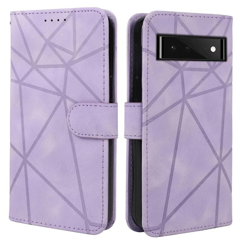 Για το Google Pixel 6a Skin Feel Γεωμετρικές γραμμές δερμάτινη θήκη τηλεφώνου (μωβ)
