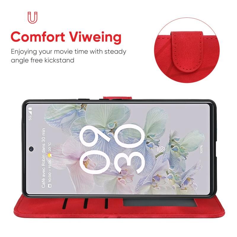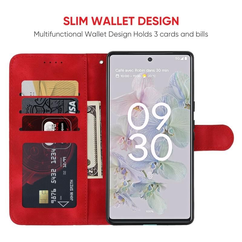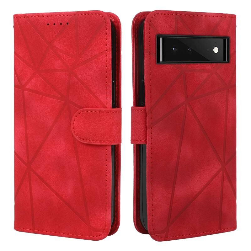 Για το Google Pixel 6a Skin Feel Γεωμετρικές γραμμές δερμάτινη θήκη τηλεφώνου (κόκκινο)