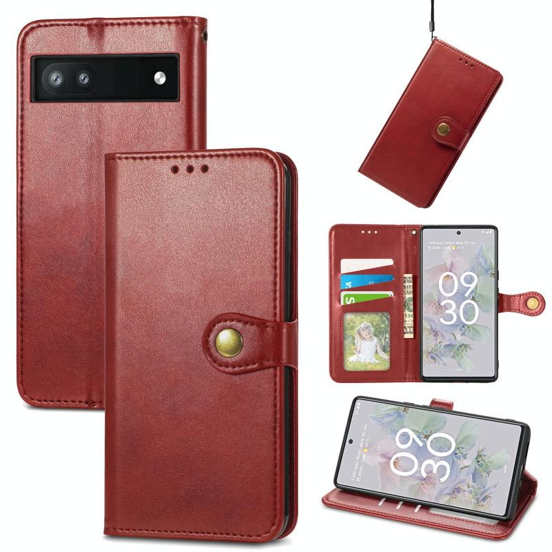 For Google Pixel 6a Solid Color Leather Buckle Phone Case(Red)