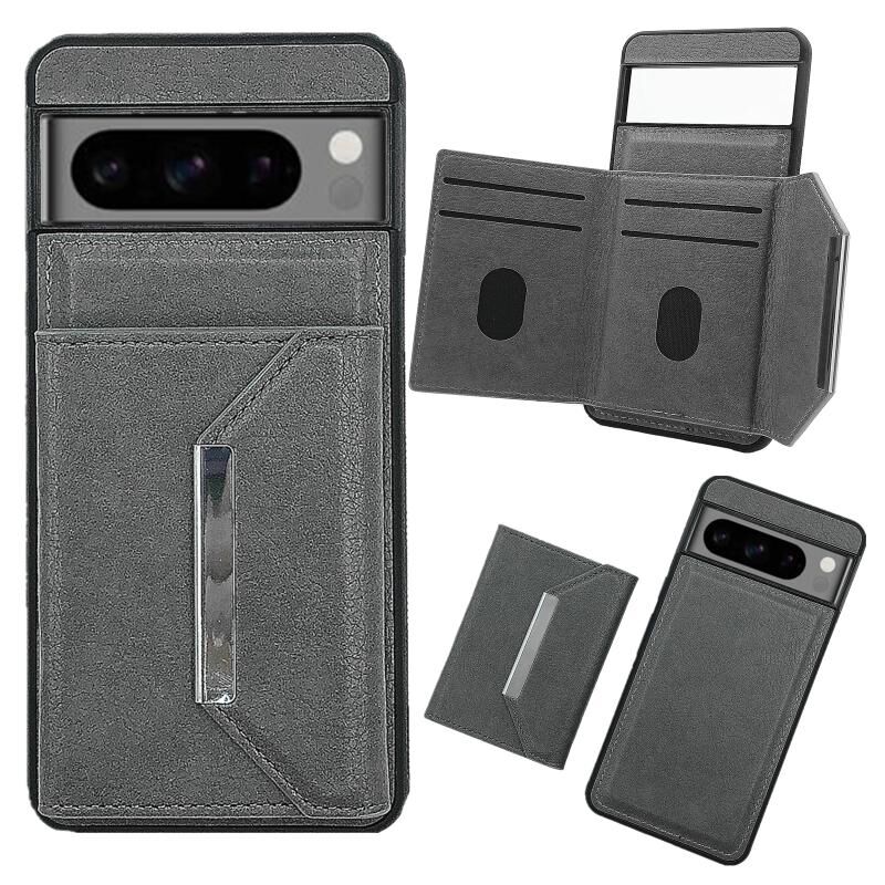Για το Google Pixel 6a Αμιγές χρώμα μεταλλική πόρπη κάρτα υποδοχές τσάντα υπόθεση τηλεφώνου (γκρι)