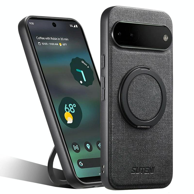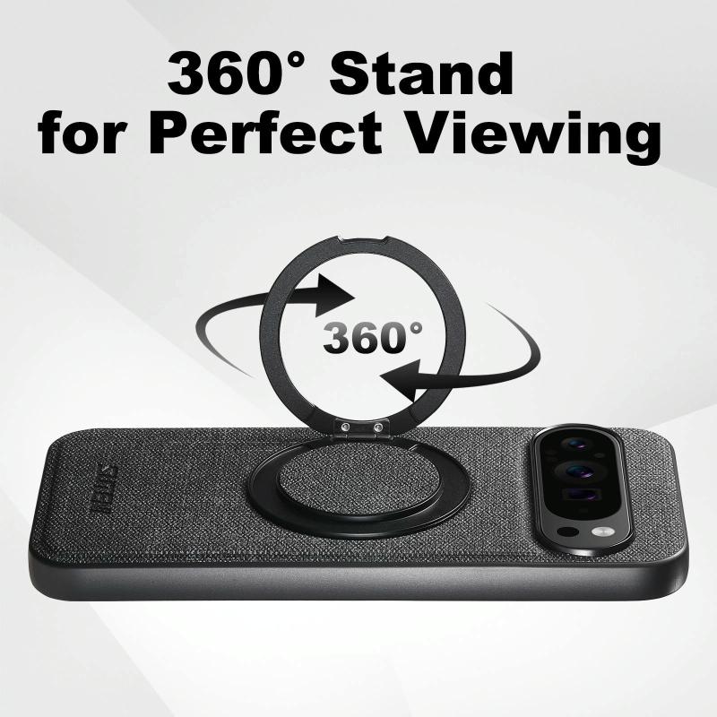 For Google Pixel 6a Suteni G3 360 Rotation Holder MagSafe Denim Leather Back Phone Case(Black) (Suteni)