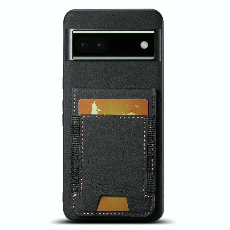 For Google Pixel 6a Suteni H03 Litchi Leather Card Bag Stand Back Phone Case(Black) (Suteni)