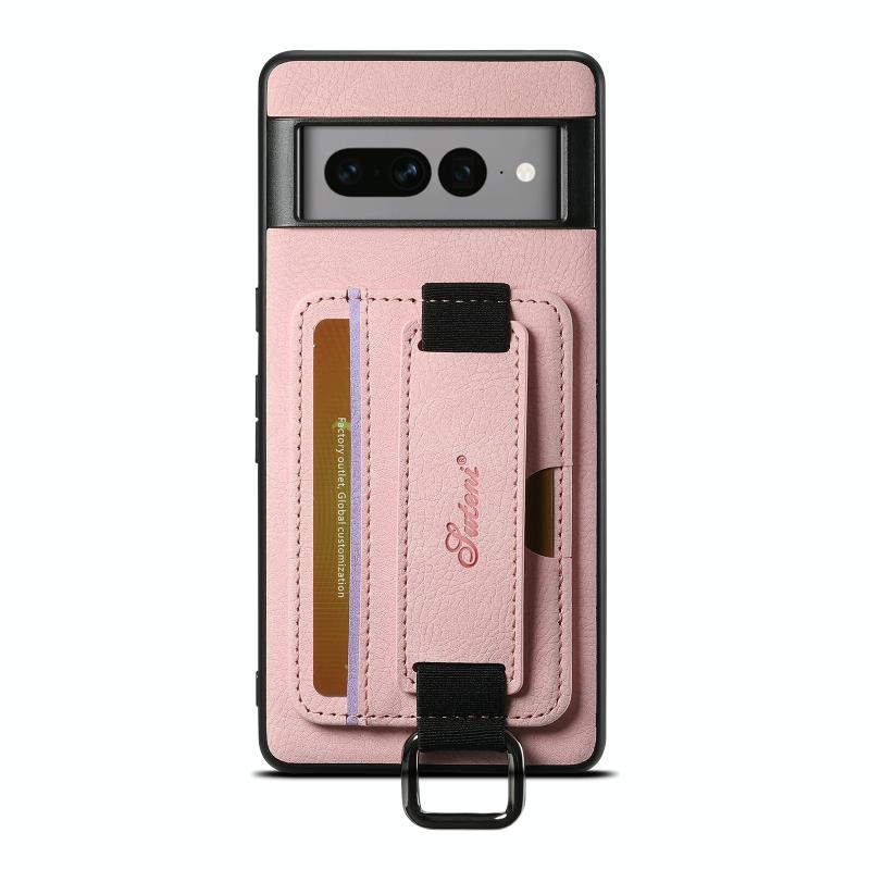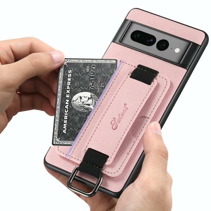 For Google Pixel 6a Suteni H13 Litchi Leather Wrist Strap Wallet Back Phone Case(Pink) (Suteni)