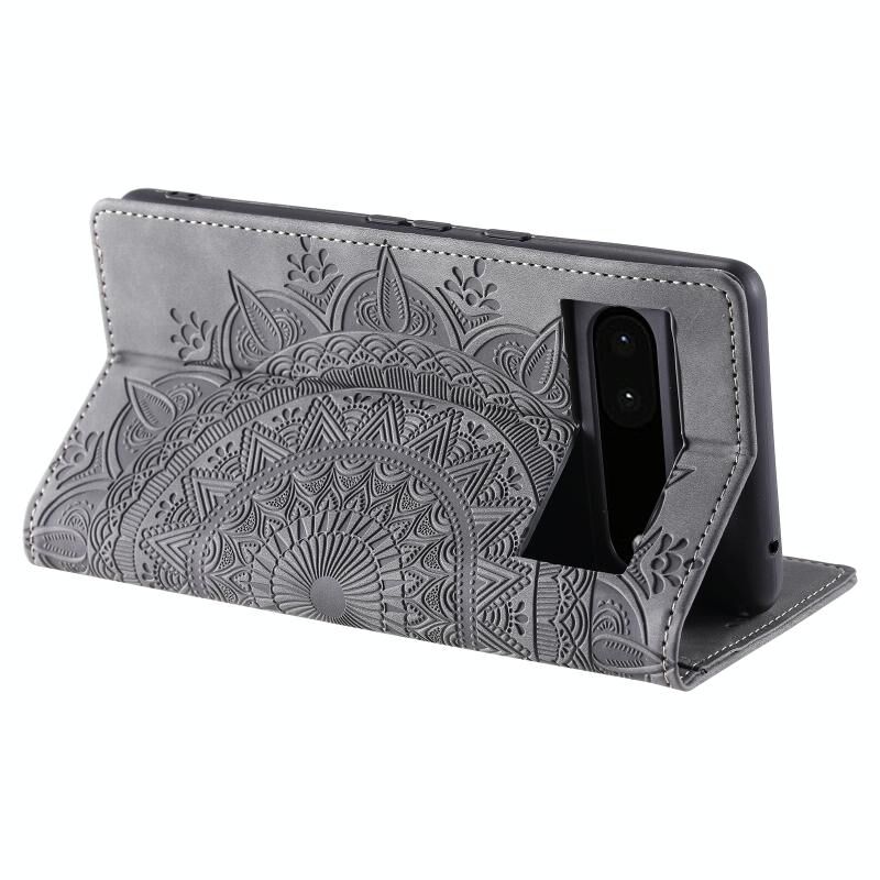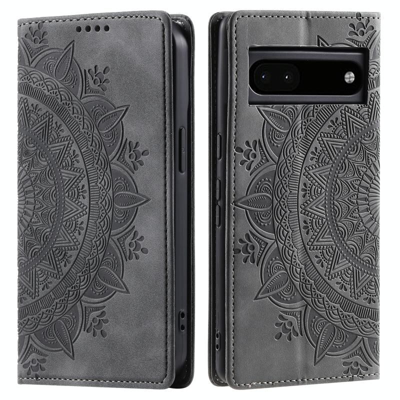 Για Google Pixel 6a Totem ανάγλυφη μαγνητική δερμάτινη θήκη τηλεφώνου (γκρι)