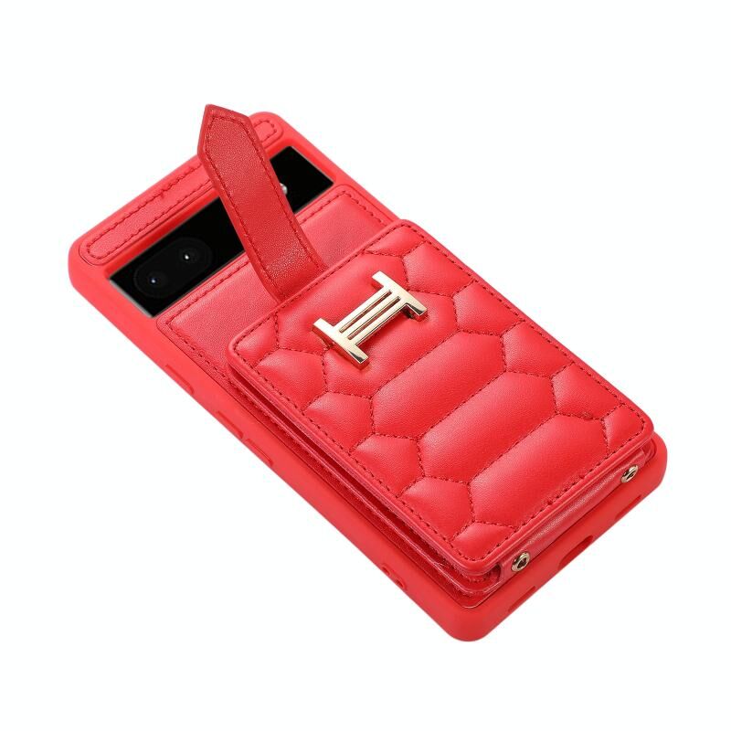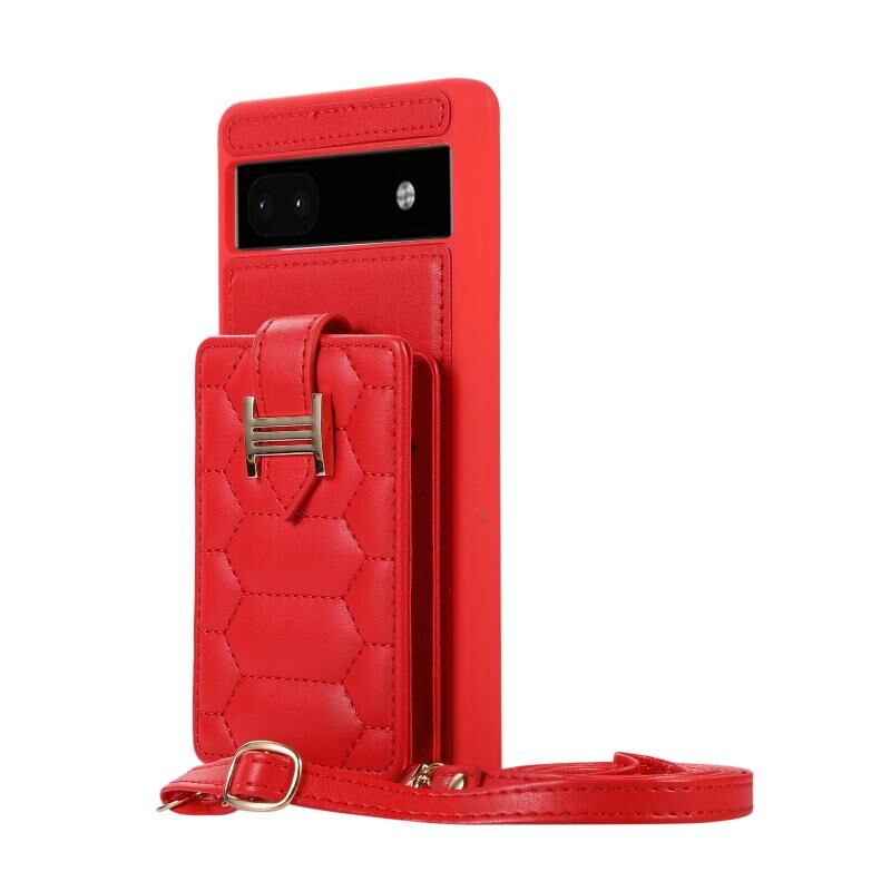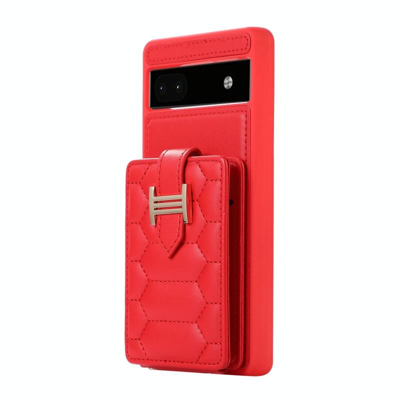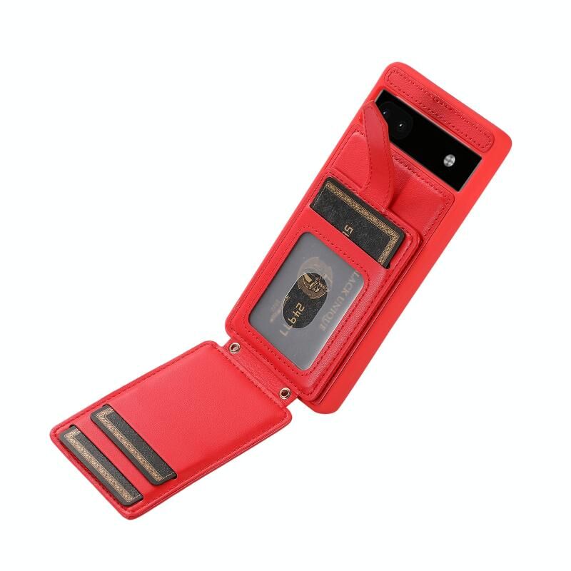 Για το Google Pixel 6a Κάθετη τσάντα κάρτας δαχτυλίδι κάτοχος θήκη τηλεφώνου με διπλό κορδόνι (κόκκινο)