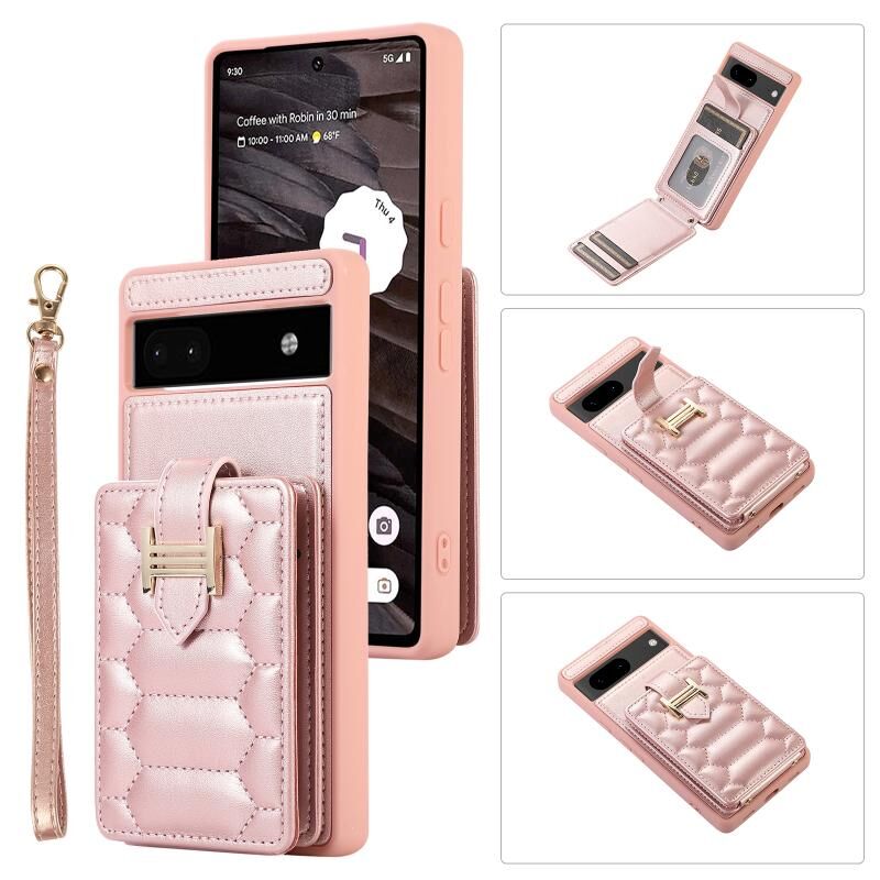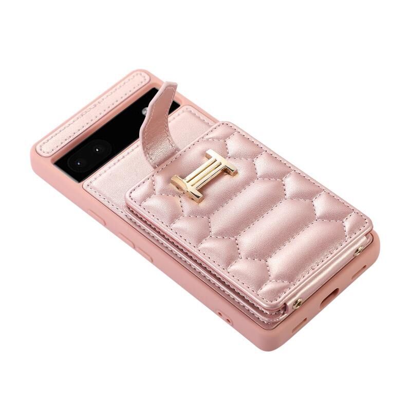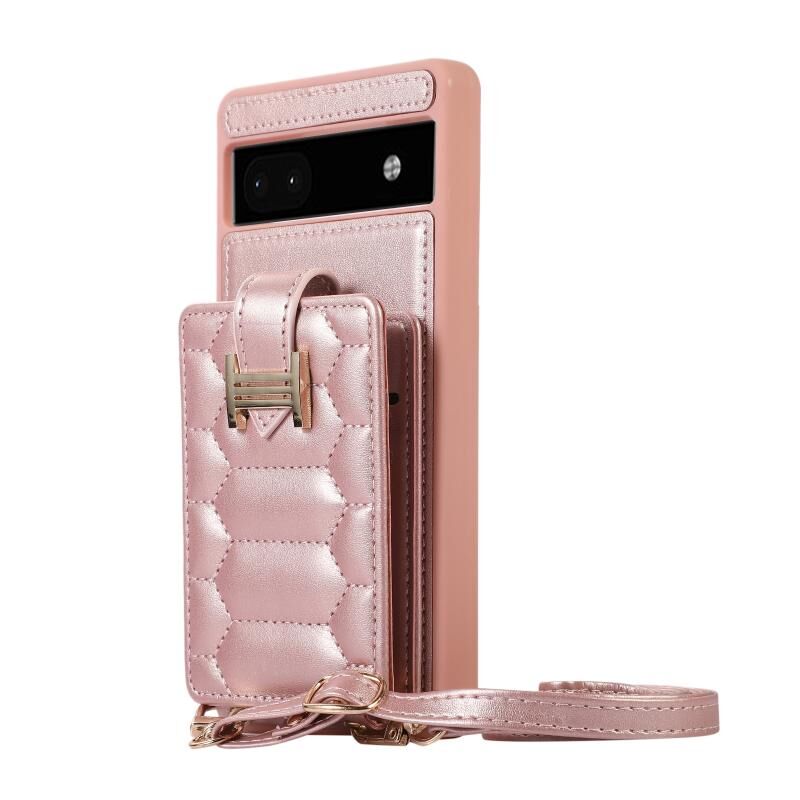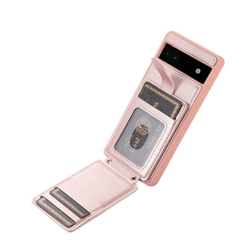Για το Google Pixel 6a Κάθετη τσάντα κάρτας δαχτυλίδι θήκη τηλέφωνο με διπλό κορδόνι (ροζ χρυσό)