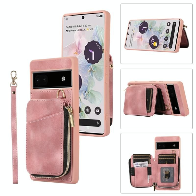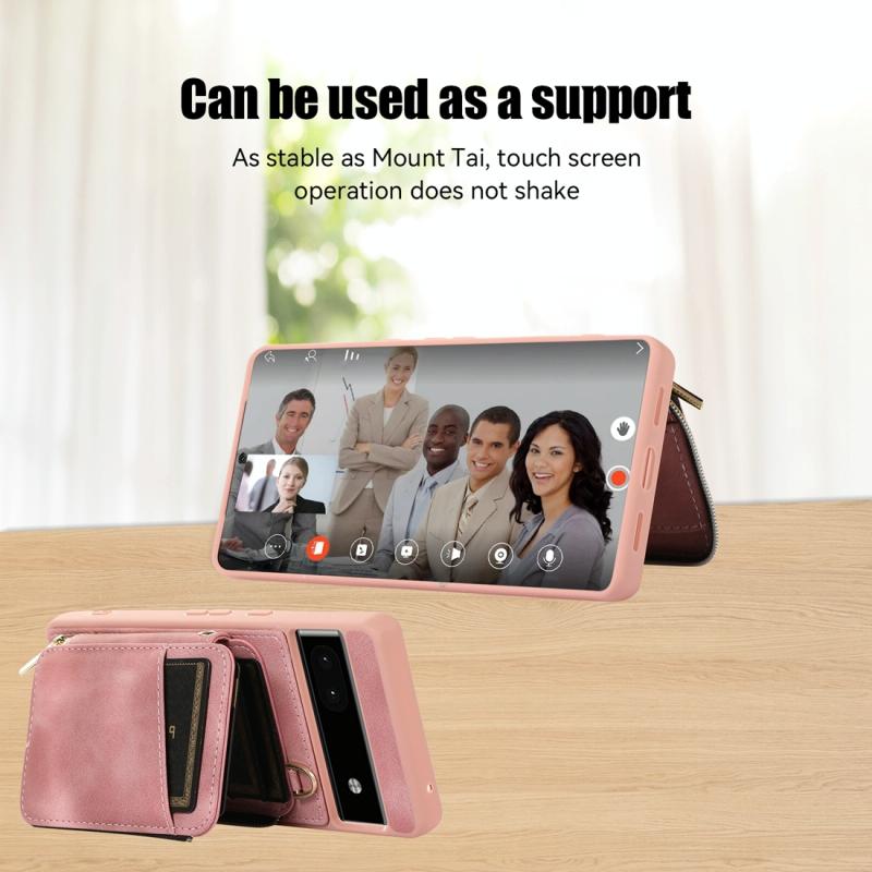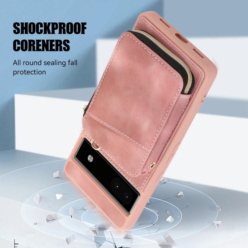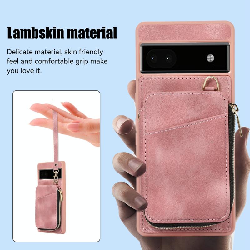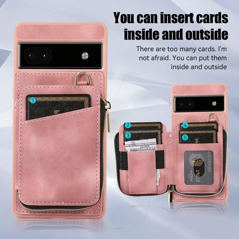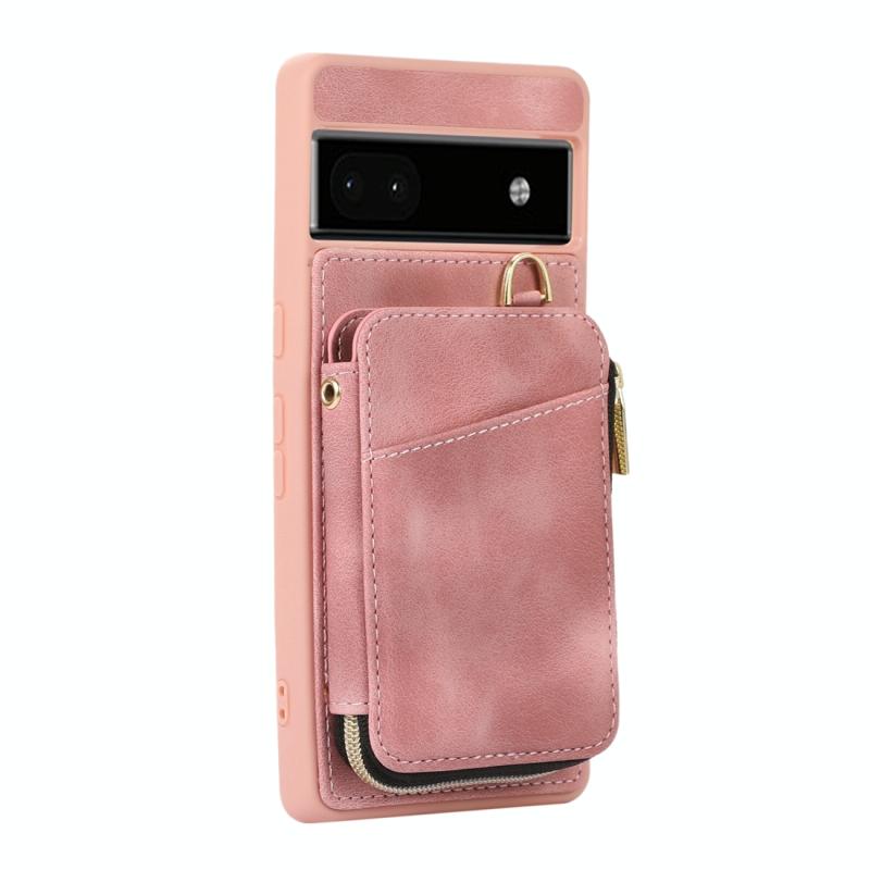 For Google Pixel 6a Zipper Card Bag Back Cover Phone Case(Pink)