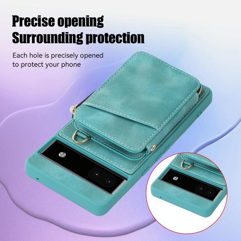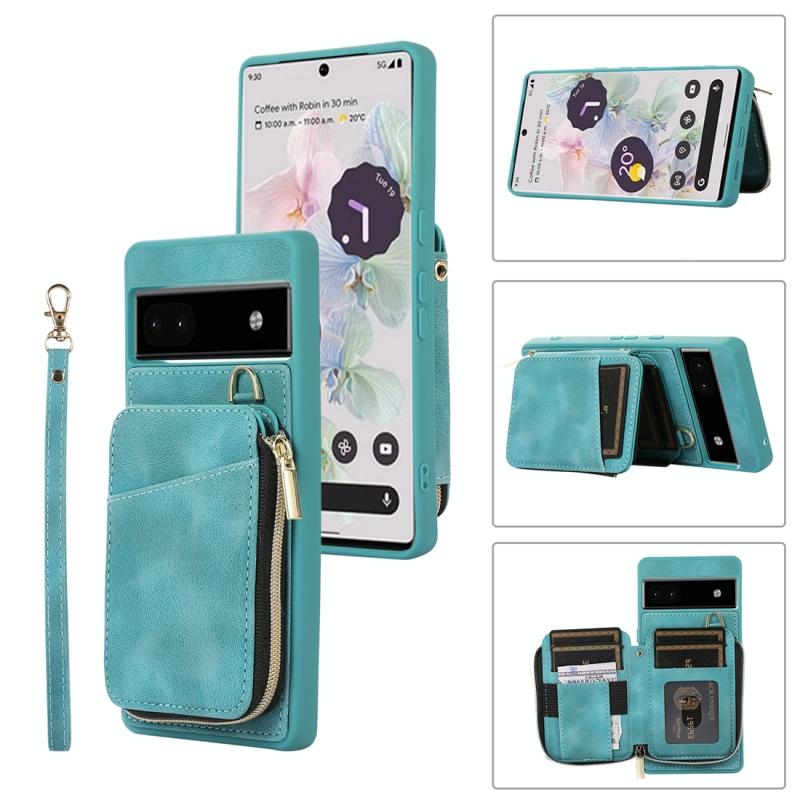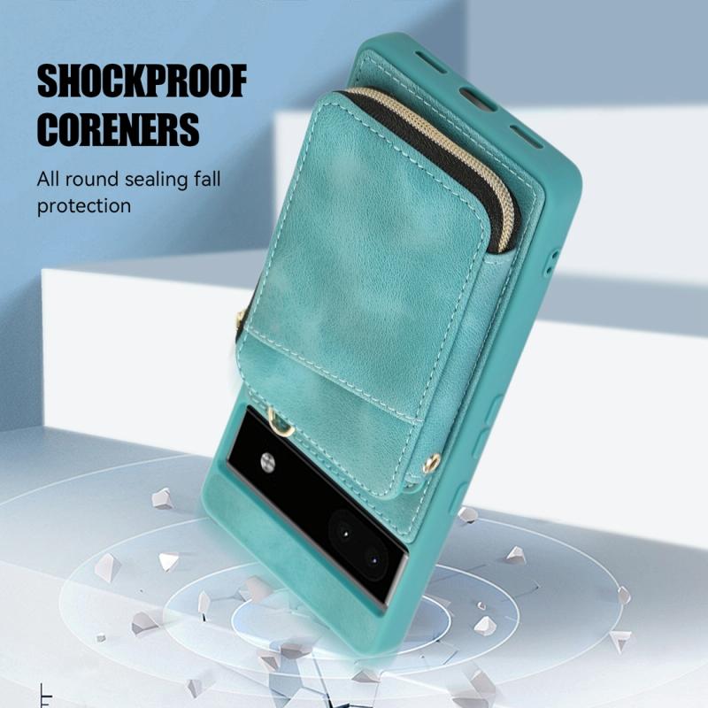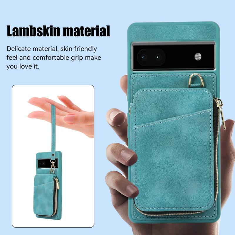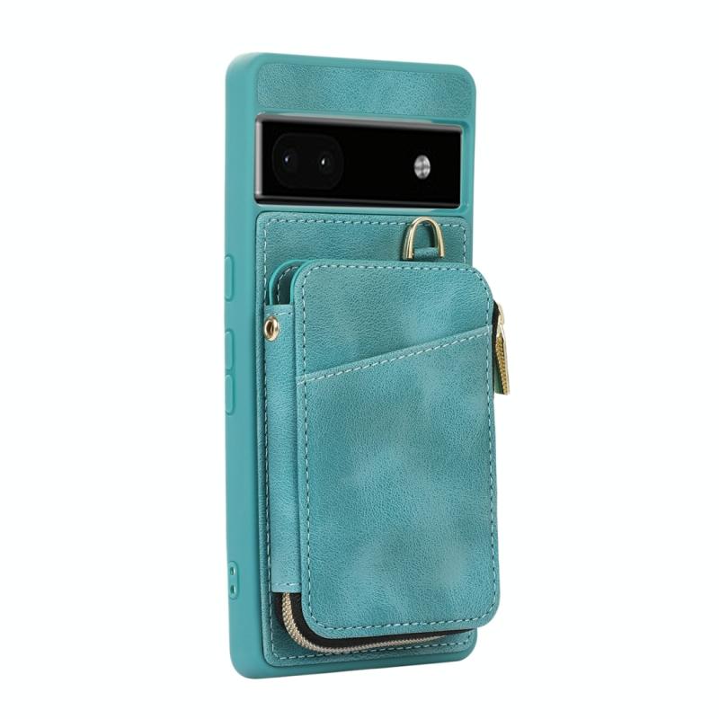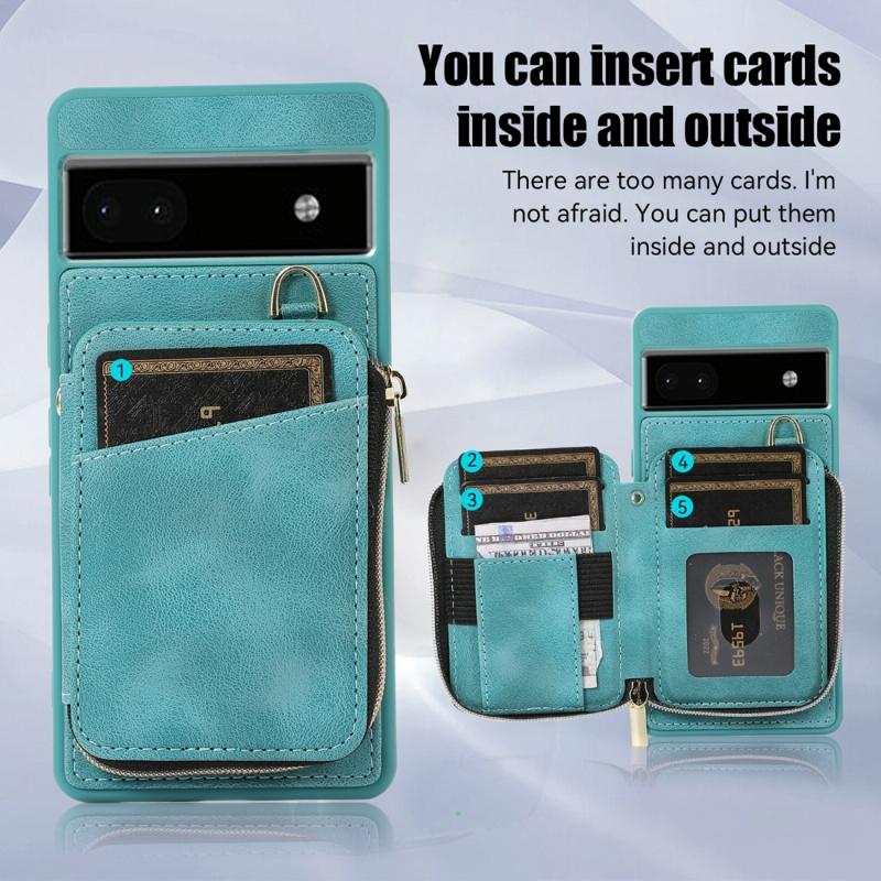 For Google Pixel 6a Zipper Card Bag Back Cover Phone Case(Turquoise)